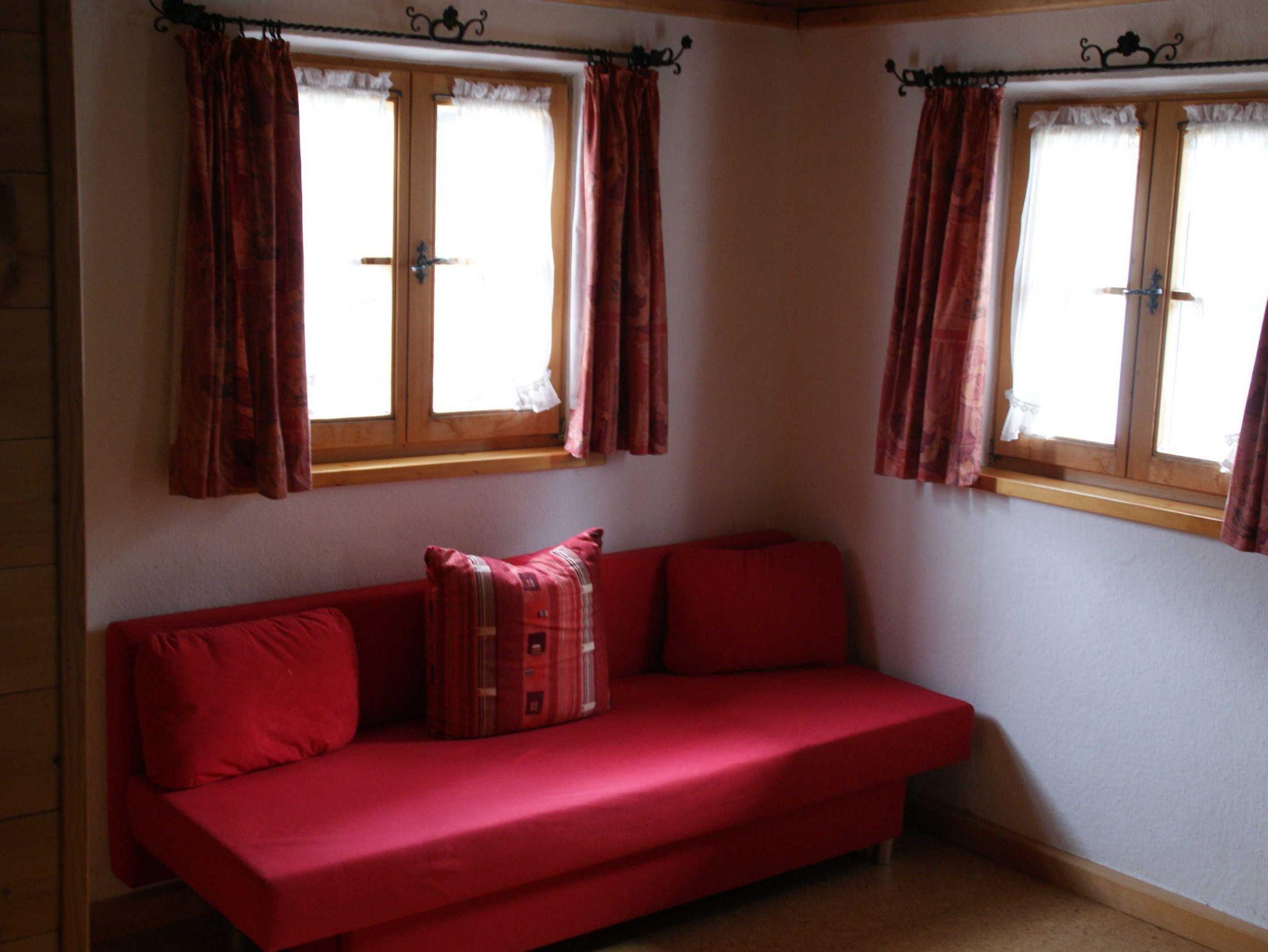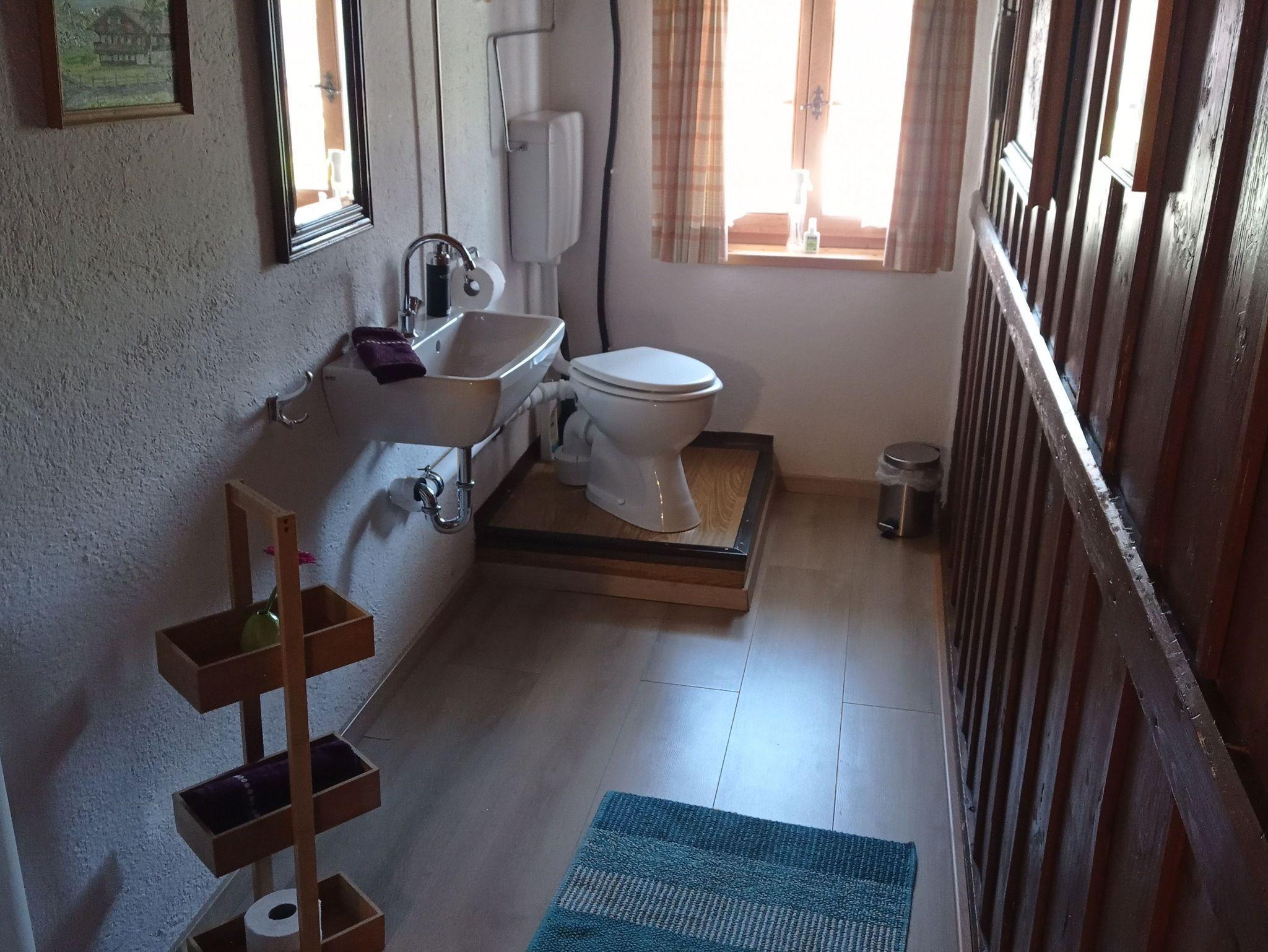 Sie verfügt über eine Wohnküche, ein Schlafzimmer und Dusche. Das WC befindet sich auch im 1. Stock, gegenüber der Ferienwohnung, wird aber ausschließlich durch die Gäste benützt.