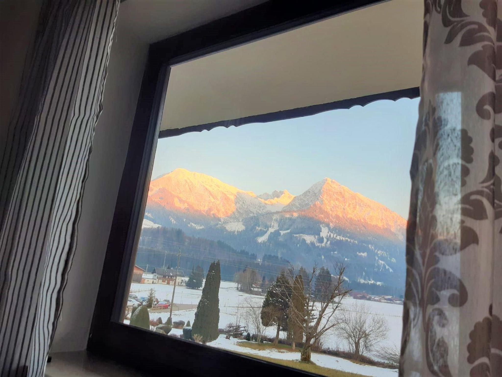 Helle, großzügige Ferienwohnung im Erdgeschoss mit sonniger Terrasse und herrlichem Bergblick. Separates Schlafzimmer mit Doppelbett, zusätzliche Schlafmöglichkeit im Wohnraum (Ausziehcouch 142 x 200). Moderne Küche mit Spülmaschine und Essplatz. Tageslicht-Badezimmer mit Dusche, separates WC. Großer Flur mit Garderobe.