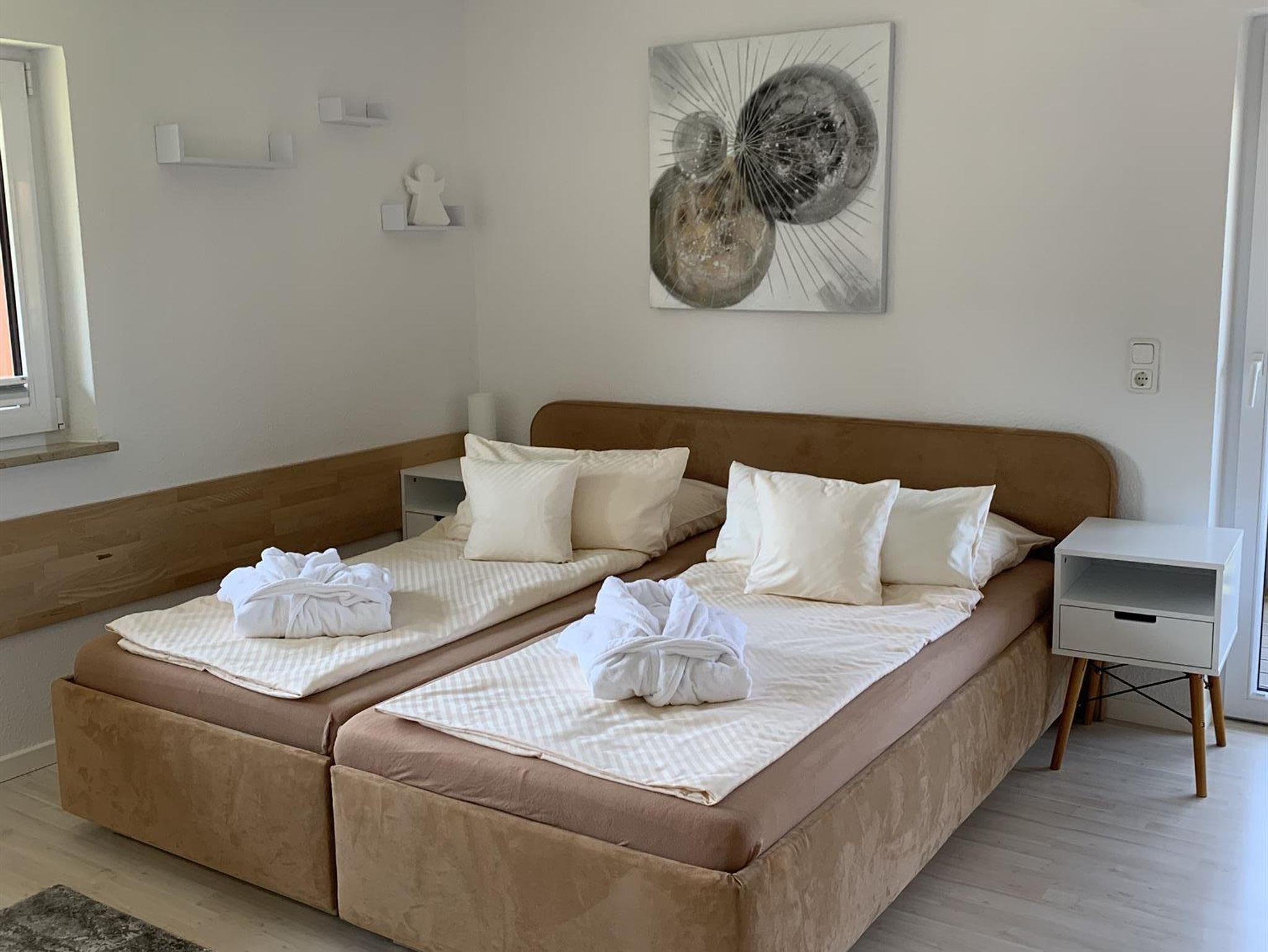 Durch eine Doppeltüre verbundenen ist ein separates Zimmer mit Doppelbett (180x200), Dusche, WC, TV) ideal für 2-4 Personen. Hochwertige Ausstattung.