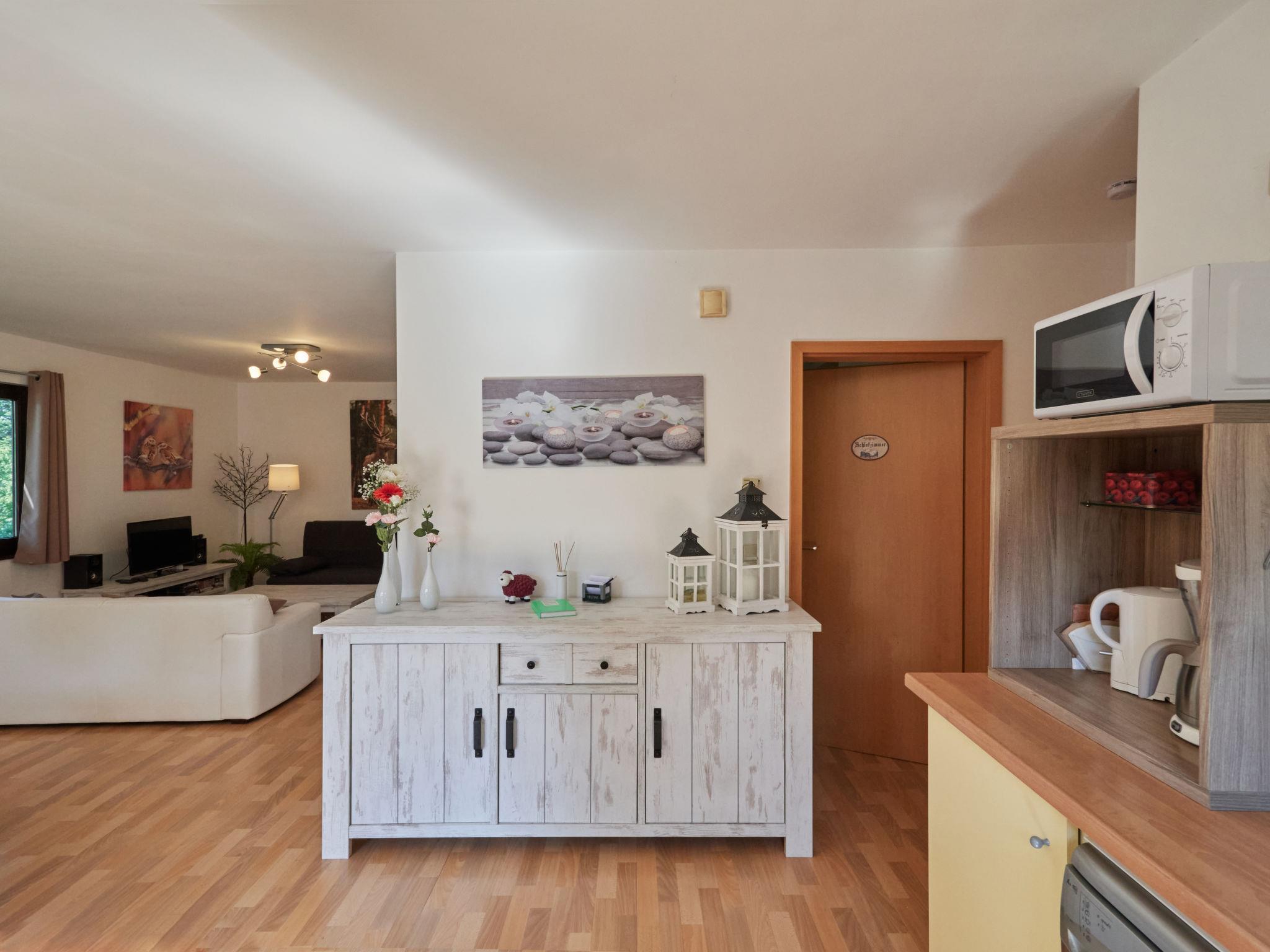 "Am Sternberg 230", 3-room apartment 75 m2, lower ground floor. Cosy furnishings: living/dining room 40 m2 with cable TV (flat screen), hi-fi system. Exit to the garden, to the terrace. 1 room 10 m2 with 1 double bed (180 cm, length 200 cm). 1 room 10 m2 with 2 beds (90 cm, length 190 cm). Kitchenette (oven, dishwasher, 4 ceramic glass hob hotplates, microwave, electric coffee machine). Shower/WC. Electric heating, air-conditioning, forced-air heating. Large terrace 30 m2, lawn 200 m2. Terrace furniture, barbecue (portable). Facilities: washing machine, children's high chair, baby cot, hair dryer. Internet (WiFi, free). Parking at 10 m. Please note: non-smokers only. Maximum 2 pets/ dogs allowed. Private entrance, smoke alarm, fire extinguisher. A Senseo pad machine is available. A shared lawn is available. Access from the parking lot to the apartment is via 8 steps. A portable dog fence is available for self-assembly. DE3558.200.18