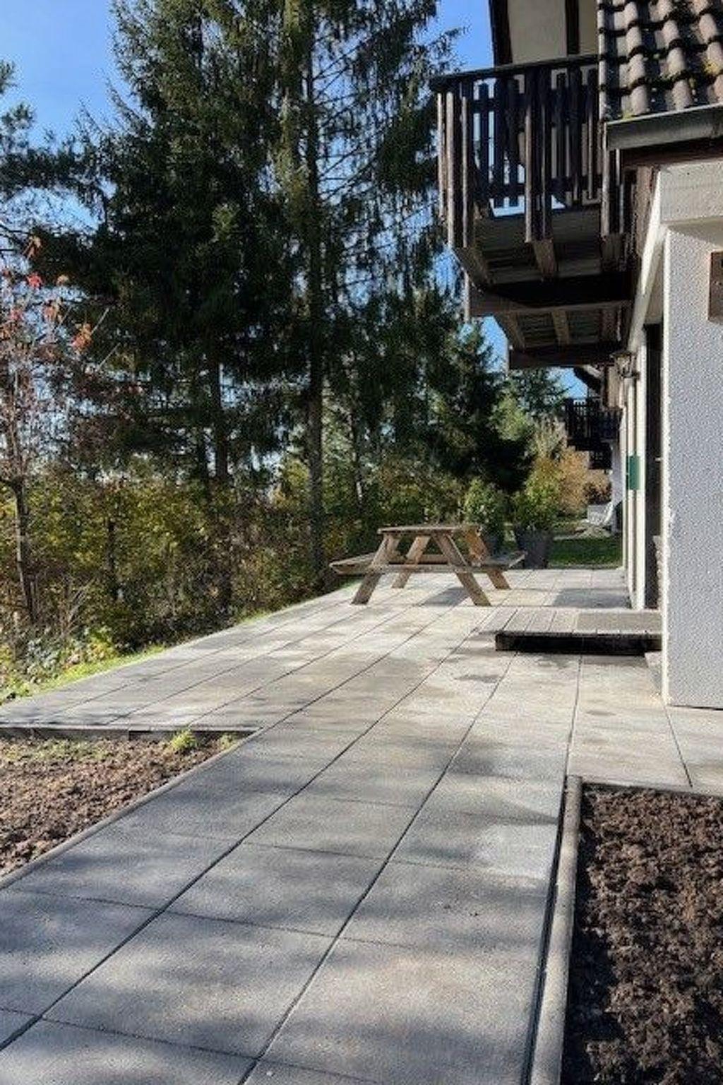 Outside, there is a terrace with a table and benches. Parking is available right by the house. The garden is not fenced.