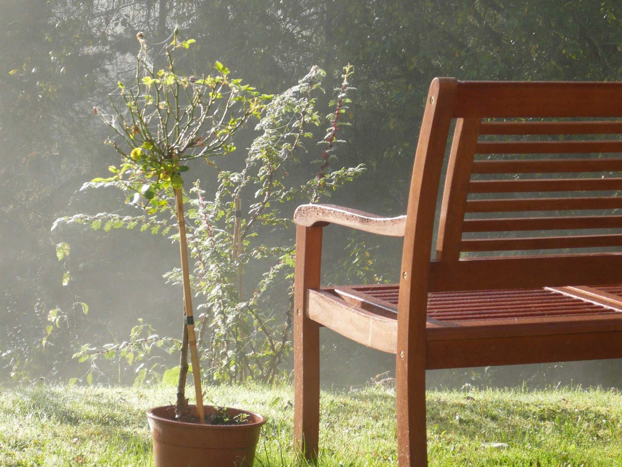 Das Haus ist mit Blumenbeeten und Rasenflächen eingefasst, in dem im Sommer die Rosen ein ländliches nostalgisches Ambiente schaffen. Die Blumen und das in hessisch-rot gestrichene Fachwerk ist einmalig im Feriendorf.