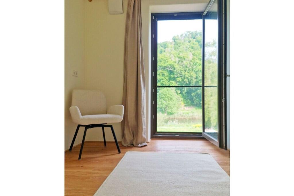 Huset, som innehåller två semesterlägenheter, är fristående och ligger i utkanten av byn Frankenroda, bara 30 meter från floden Werra, inom bekvämt gångavstånd och endast åtskilda av en äng. Ljusa, luftiga rum med panoramafönster erbjuder fri utsikt över Werra och de omgivande branta sluttningarna. Varje rum har utsikt över den naturliga omgivningen. Byggnaden är konstruerad med uteslutande ekologiska byggmaterial (kalkputs, träfiberisolering, kalkfärg, massivt parkettgolv och natursten). Användningen av naturmaterial – även i möblerna – skapar ett unikt behagligt och avkopplande inomhusklimat. Huset ligger nära cykelleden i Werradalen, många vandringsleder och den lokala kajakuthyrningen.