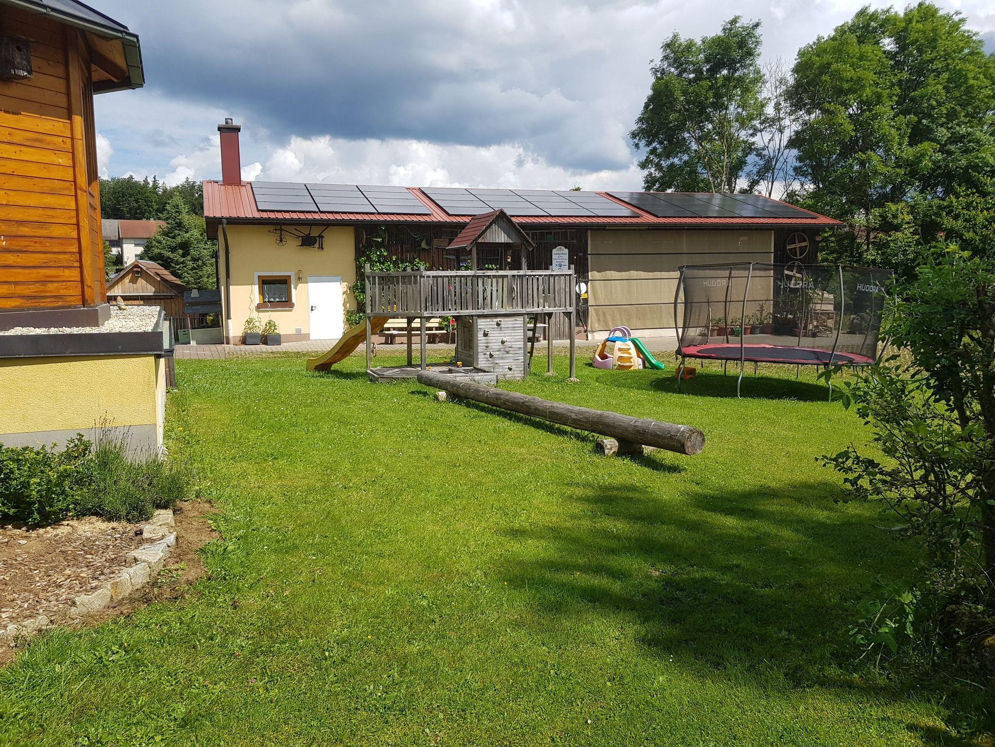 Für die kleinen Gäste steht ein großer Garten mit Kinderspielplatz, Trampolin und einem Fussballtor zur Verfügung.