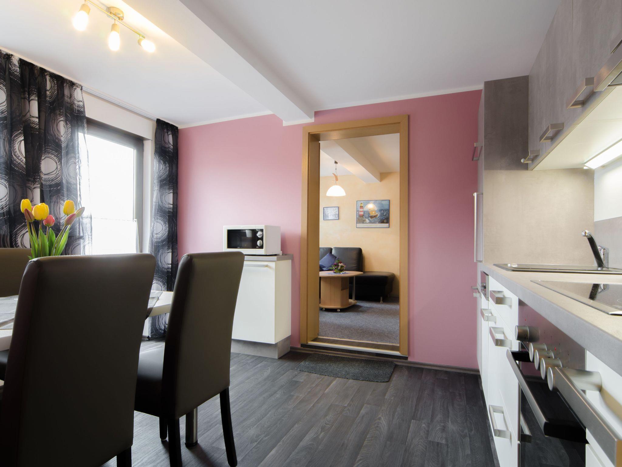Die Ferienwohnung III ist 50 m² groß und befindet sich im 2. Stock. Sie verfügt über 1 Schlafzimmer mit Doppelbett und Beistellbett (Sofabett), einer voll ausgestatteten Küche (inkl. Spülmaschine) mit Essplatz, Wohnzimmer mit Sat/TV und einem Bad mit Dusche/WC. Von der Küche aus kann man auf den Westbalkon gelangen.