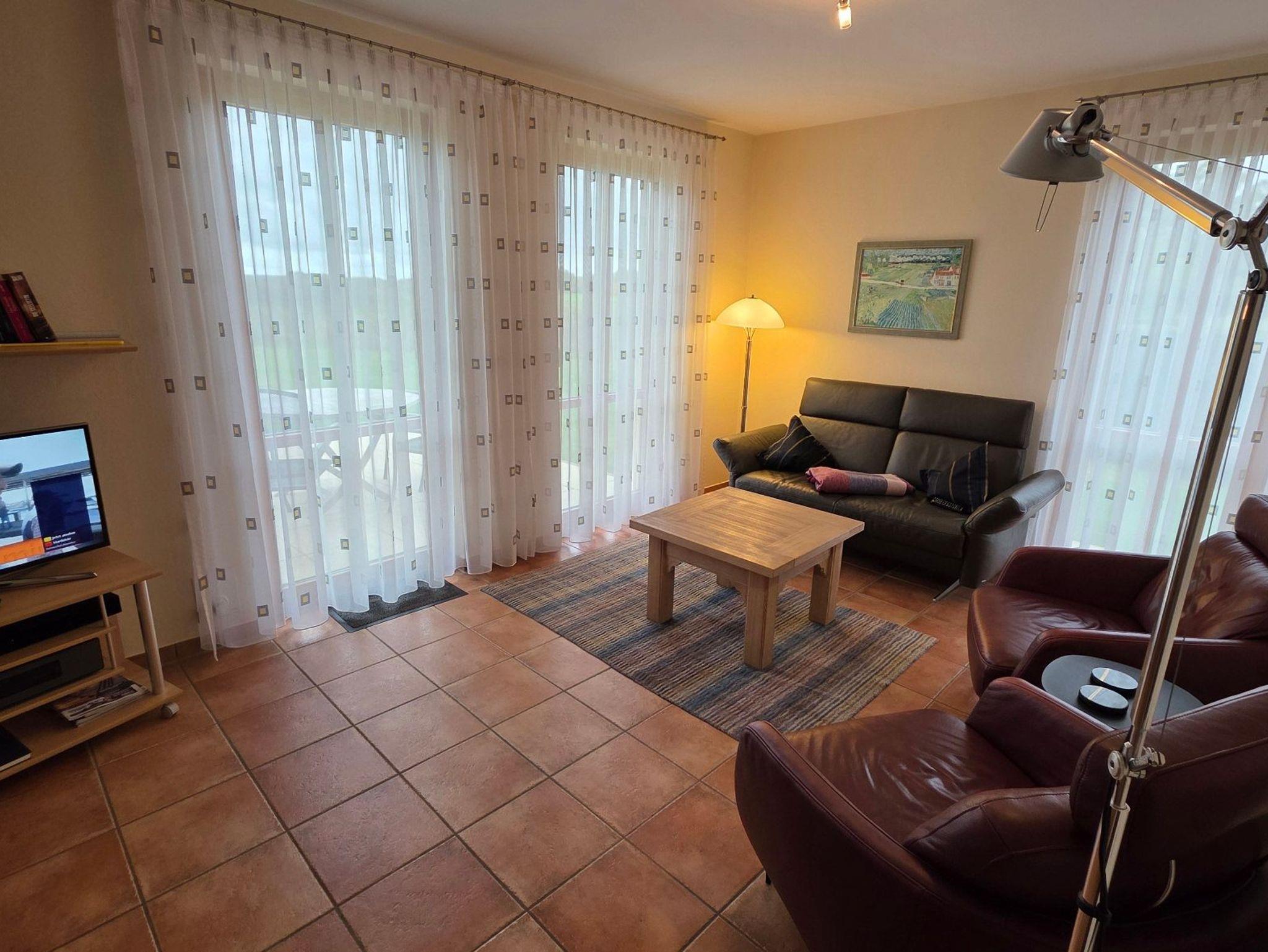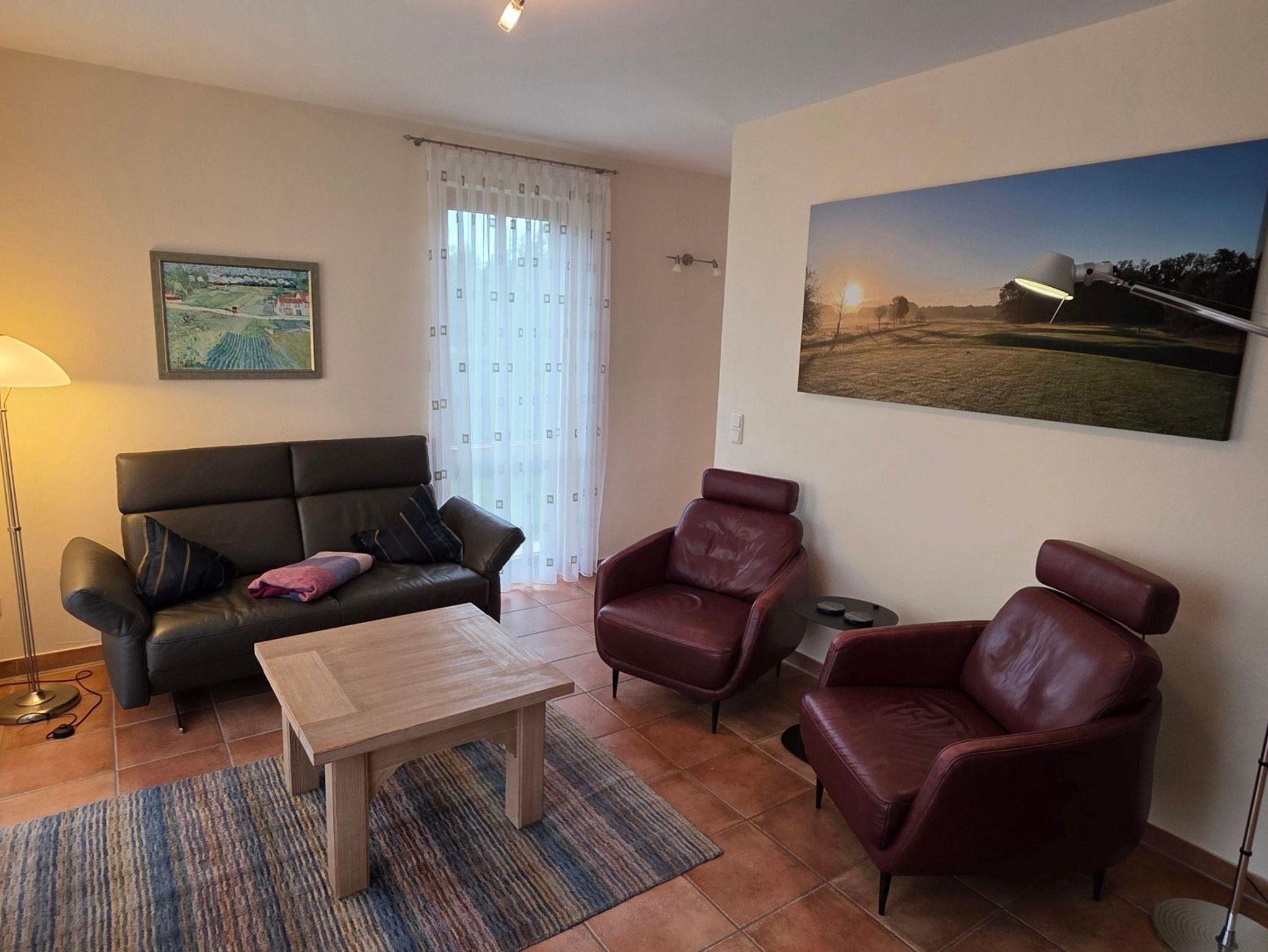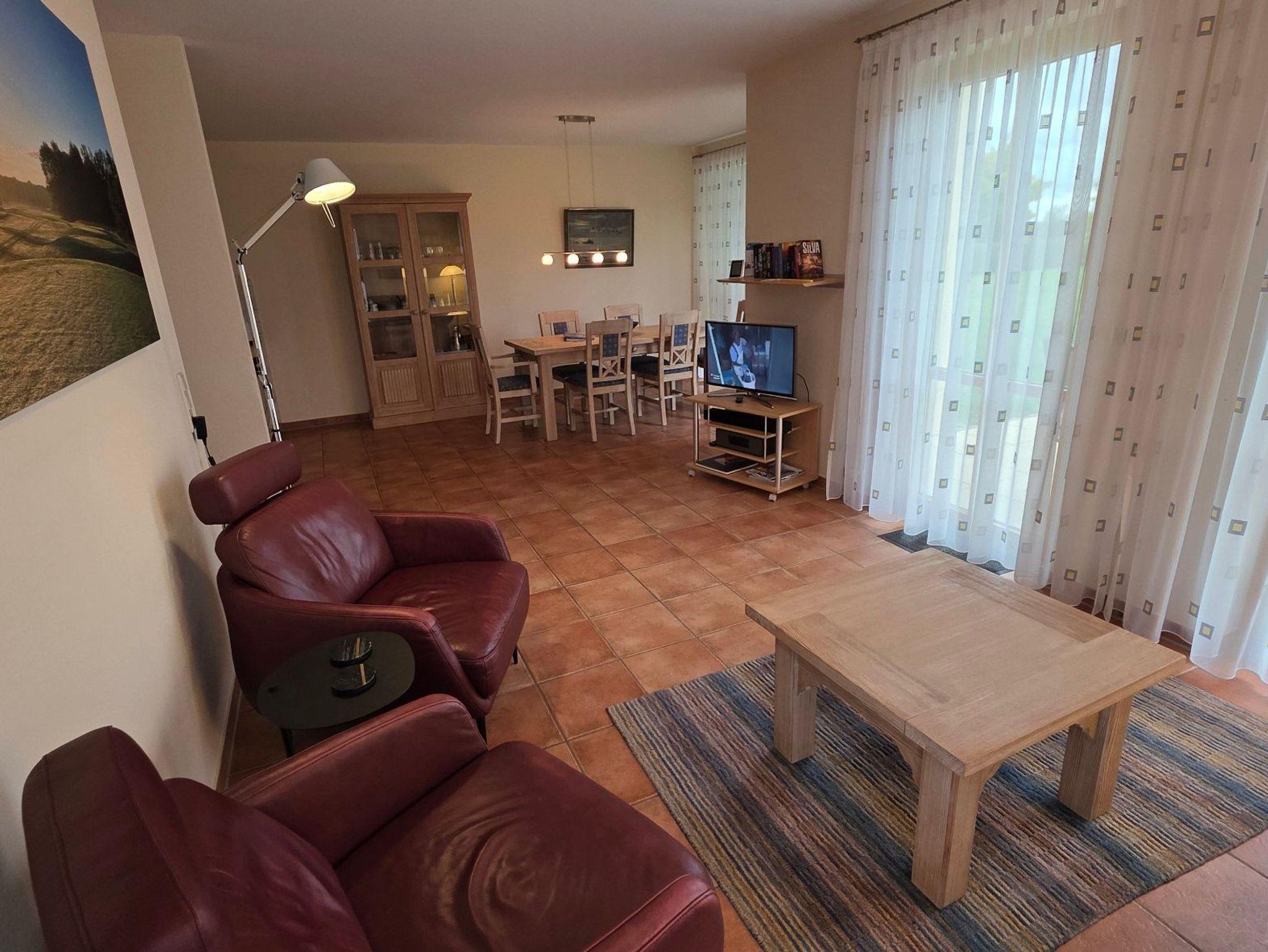 Geschmackvoll eingerichtete Ferienwohnung (75 m²) im Erdgeschoss recht des Hauses Albatros. Die Lage ist direkt am Golfplatz. Große Terrasse nach Westen. Herrlicher Panoramablick