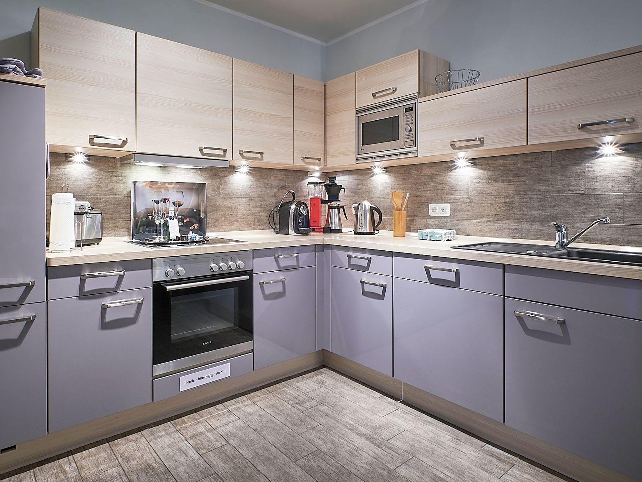 Voll ausgestattete Gourmet-Küche mit Ofen, Mikrowelle, Kühl-/Gefrierschrank, Geschirrspülmaschine