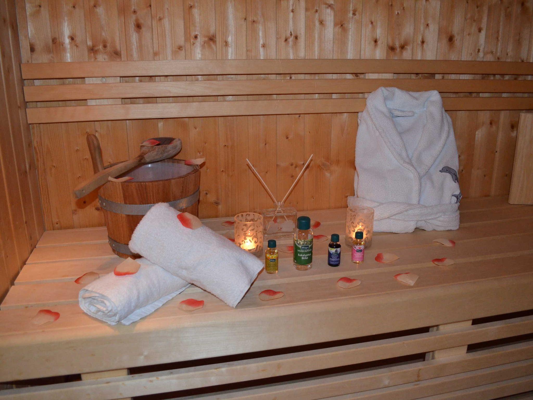 eigene teilverglaste Sauna in oberem Bad