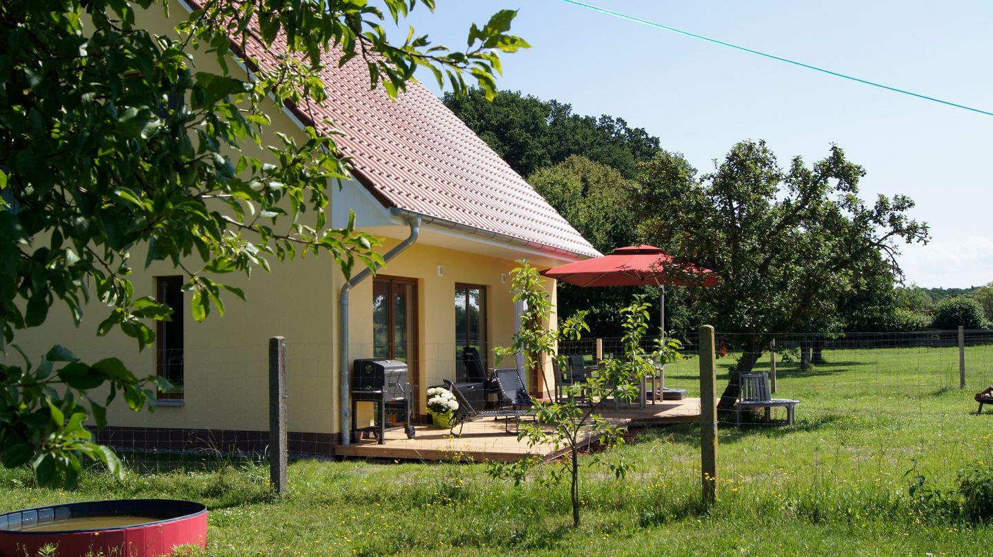 Das moderne, freistehende Ferienhaus Sonne in Göhren-Lebbin bietet auf 125 m² Platz für bis zu 8 Personen in vier Schlafzimmern und zwei Badezimmern. Zur Ausstattung gehören eine voll ausgestattete Küche, WLAN, Terrasse mit Garten und Grill sowie kostenloser Parkplatz. Kinder und Haustiere (maximal 2) sind willkommen. Nichtraucherhaus, in Wald, Wasser und Strandnähe