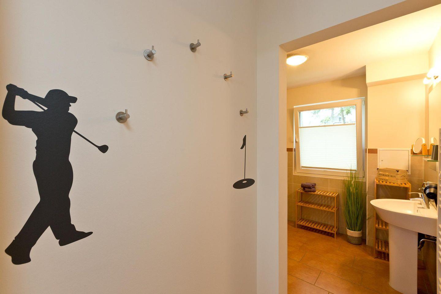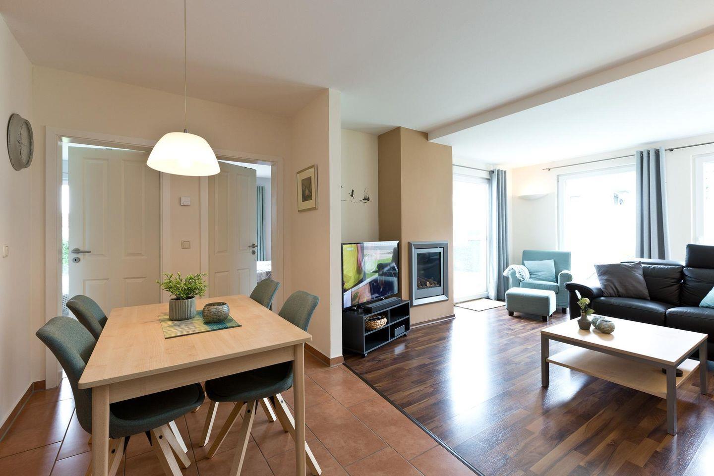 Der Wohn- und Essbereich mit Gaskamin, zwei Schlafzimmer und einem Bad mit Sauna sowie eine Terasse und Gartenbereich laden zu entspannten Aufenthalt in ruhiger Lage ein. Sie verbringen ihren Urlaub im Grünen und erreichen den Ortskern am Marktplatz mit Einkaufsmöglichkeiten, verschiedenen Restaurants und dem Fahrradverleih trotzdem fußläufig in ca. 10 Minuten! Eine Haltestelle des Fleesenseeshuttle (ein kostenloser Bustransfer der Kurverwaltung) ist direkt vor der Tür, so dass man bequem und kostenlos stündlich den Golfclub, den Marktplatz und den Strand in Untergöhren erreichen kann.