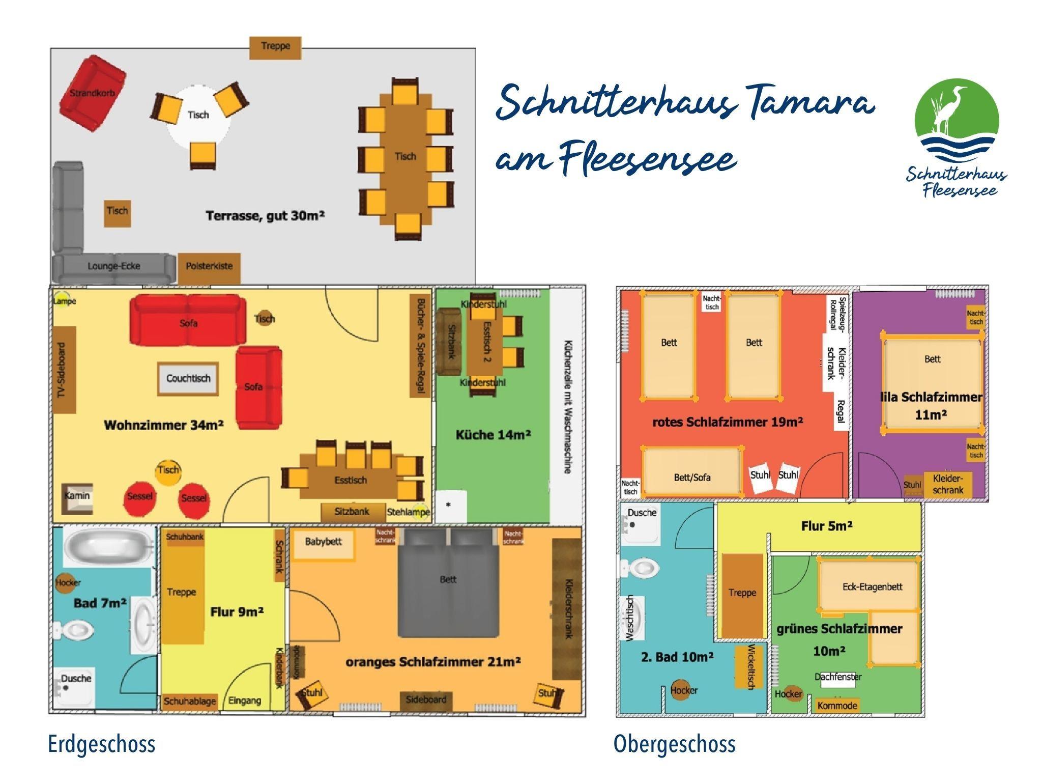 Beim Ferienhaus Tamara handelt es sich um ein über 150 Jahre altes historisches Schnitterhaus, das durchsaniert & hochwertig ausgestattet ist. Unsere Tamara wurde 2022 und 2025 vom Deutschen Tourismusverband offiziell mit 4 Sternen (****) bewertet: Höherwertige Gesamtausstattung mit gehobenem Komfort. Sie bietet Platz für 6 bis 9 Personen zuzüglich 1 Kleinkind. Auf großzügigen 140m² über 2 Etagen befinden sich 5 Wohnräume: Ein 34m² großes Wohnzimmer mit neuem Kaminofen, gemütlichen Sitzgelegenheiten, einem großen Esstisch, einem smartem Flachbild-TV (mit DVD-Player & vielen DVDs) & einer smarten Musikanlage (mit Bluetooth/CD/Radio/USB). Daneben gibt es 2 Tageslicht-Vollbäder (1 mit Dusche, Badewanne & WC, 1 mit Dusche & WC), eine vollausgestattete große Küche & insgesamt 4 separate Schlafzimmer: