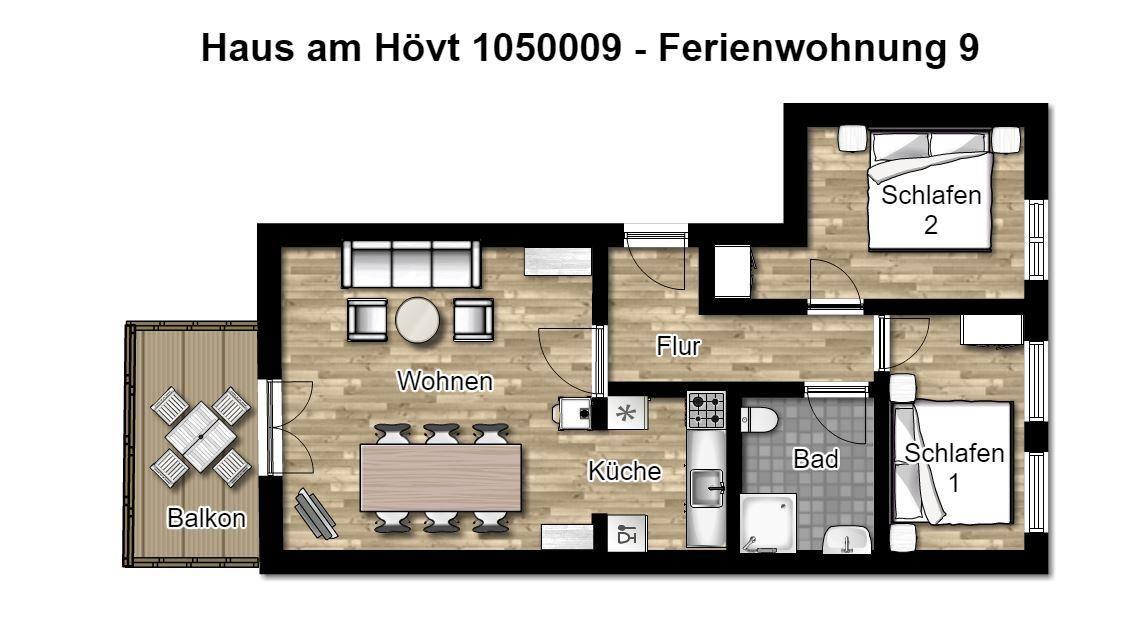 Herrlich entspannte Stunden auf dem sonnigen Südbalkon garantieren Ihnen unvergessliche Urlaubsmomente! Zu der Ferienanlage „Haus am Hövt“ gehört zudem eine große Außenanlage mit Gemeinschaftsgarten, Grillplatz, Tischtennisplatte und Spielmöglichkeiten.