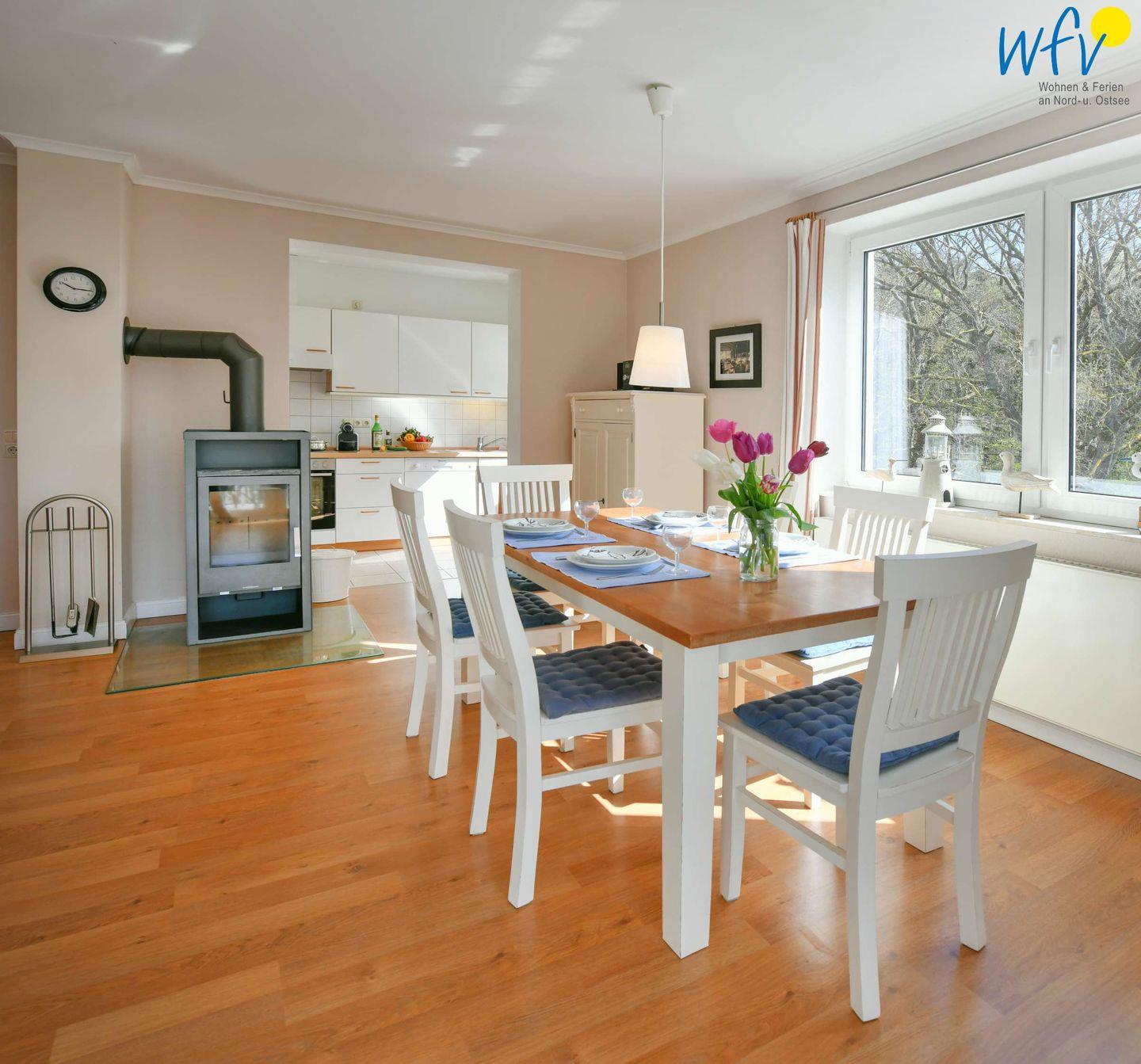 Große Fenster verleihen der Ferienwohnung eine sehr freundliche und gemütliche Atmosphäre, durch die Sie sich auf Anhieb wohlfühlen werden. An kühleren Tagen wird es durch den warmen Kaminofen besonders gemütlich!
