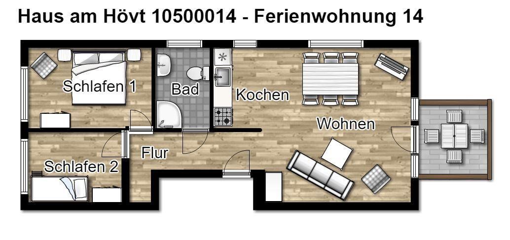 Zu der Ferienanlage „Haus am Hövt“ gehört zudem ein großer Gemeinschaftsgarten mit Grillplatz, Tischtennisplatte und Spielmöglichkeiten, den Sie gerne nutzen dürfen.