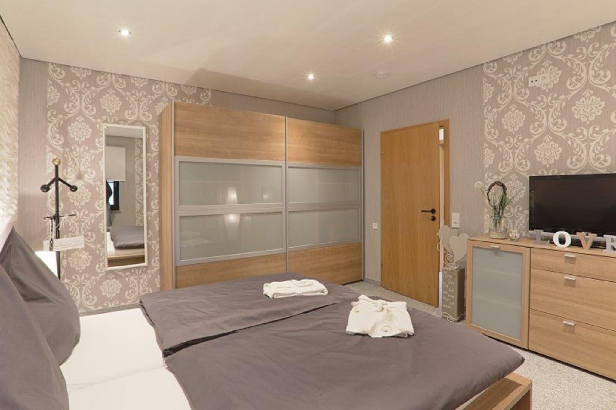I januari 2019 belönades detta vackra semesterhus med 5 stjärnor av den tyska turistföreningen, vilket omedelbart skiljer det från konkurrenterna. Den har ett charmigt utseende och ett underbart läge nära centrum och Badesee. Perfekt för semester med familj eller vänner! Gönnersdorf är omgivet av pittoreska landskap, vackra skogar och imponerande sjöar (Badesee 10 km bort). Du kan njuta av promenader, cykling och ridning i regionen, men fiske och båtliv är också möjligt. Gönnersdorf är också hem för ett antal charmiga, traditionella byggnader och monument. Semesterhuset erbjuder fantastiska allmänna faciliteter med exklusiv komfort. Boendet har parkering, ett fullt utrustat kök och hälsofaciliteter för avkoppling. Du kan börja dagen avslappnad med en kopp kaffe i den vackert inredda trädgården innan du utforskar de vackra omgivningarna. Det finns även ett gym för den sportiga semesterfiraren.