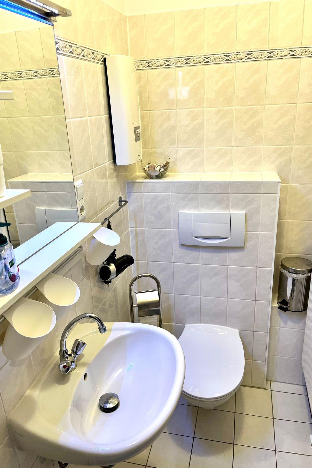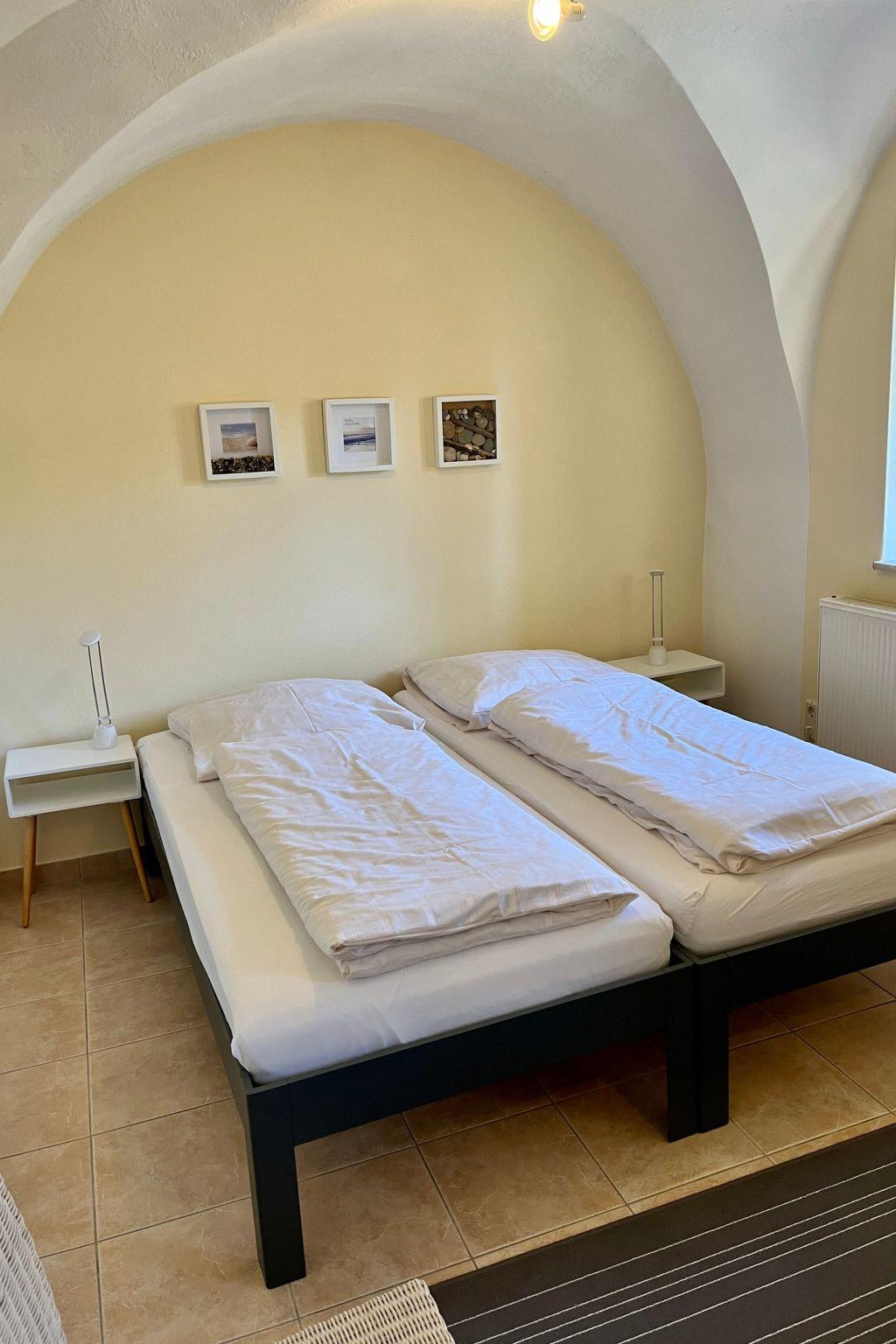 Inside, you will find harmoniously coordinated furnishings that are both functional and inviting. The flat is characterised by a striking vaulted bedroom that exudes a special charm. A fully equipped kitchen allows you to dine and linger in comfort even during a longer stay. A tumble dryer is available for your exclusive use, making everyday life easier. Nevertheless, amenities such as a ceramic hob, a filter coffee machine, a kettle and a dishwasher complete the well thought-out interior.