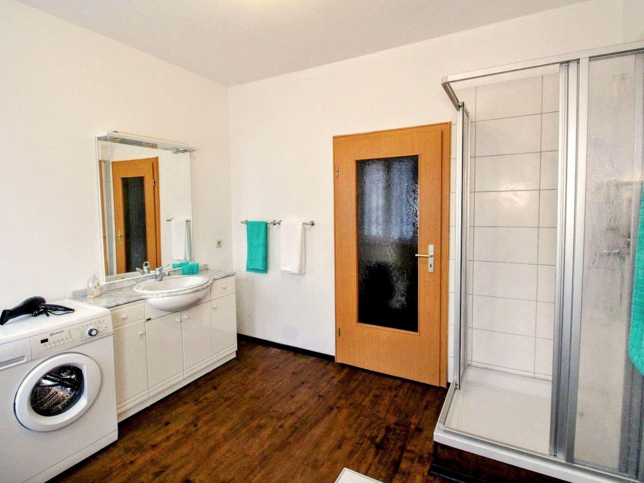 The bathroom is bright and functional. It has windows with natural light, a shower, a WC and a washing machine for free use. Please bring your own towels - so everything remains hygienic and personalised. The washing machine is at your disposal during your stay, which is particularly appreciated when travelling for longer periods or on business.