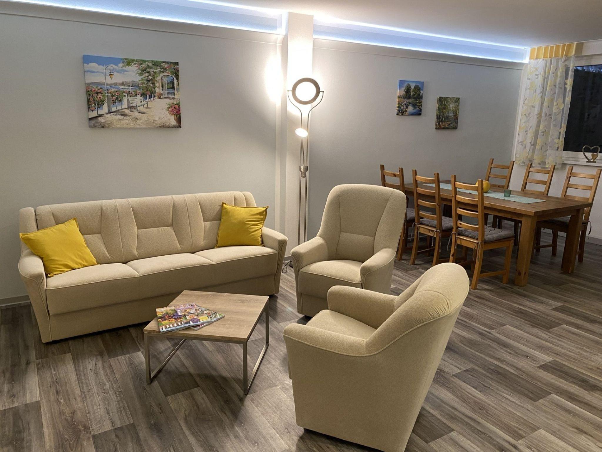 Die Sanitärräume befinden sich auf der Etage und werden gemeinschaftlich genutzt. Eine Gemeinschaftsküche sowie ein Aufenthaltsraum stehen allen Gästen zur Verfügung.