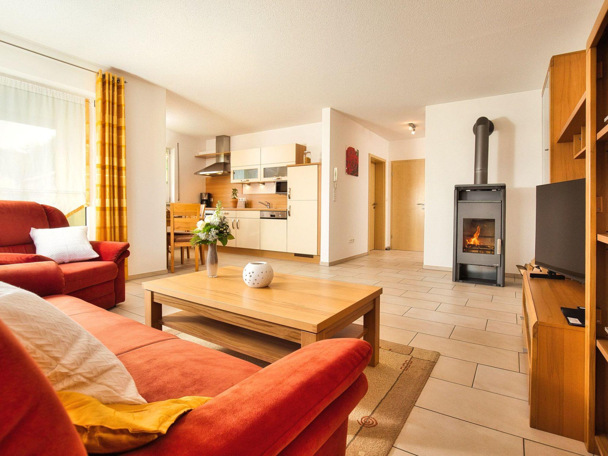 The house is completely new and lovingly furnished with high-quality, modern furniture. Each holiday flat has a storeroom/utility room. The holiday flats are barrier-free. The kitchens are fully equipped, including a dishwasher, electric cooker, microwave, oven, fridge with freezer compartment and extractor fan. All flats have a wood-burning stove with soapstone panelling and a glass panel for a romantic atmosphere. The wood for this is available free of charge. The bathroom has a large washbasin, WC and shower. Towels and bathrobes are provided free of charge. All flats are equipped with central heating. All beds are double beds with two separate mattresses.