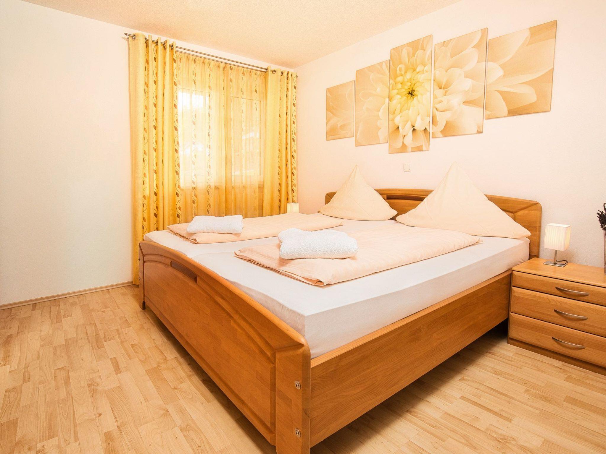 The ground floor flat offers a living space of 70 square metres. There is one bedroom with a double bed, so the flat can be booked for a maximum of two people. However, a cot can be added.