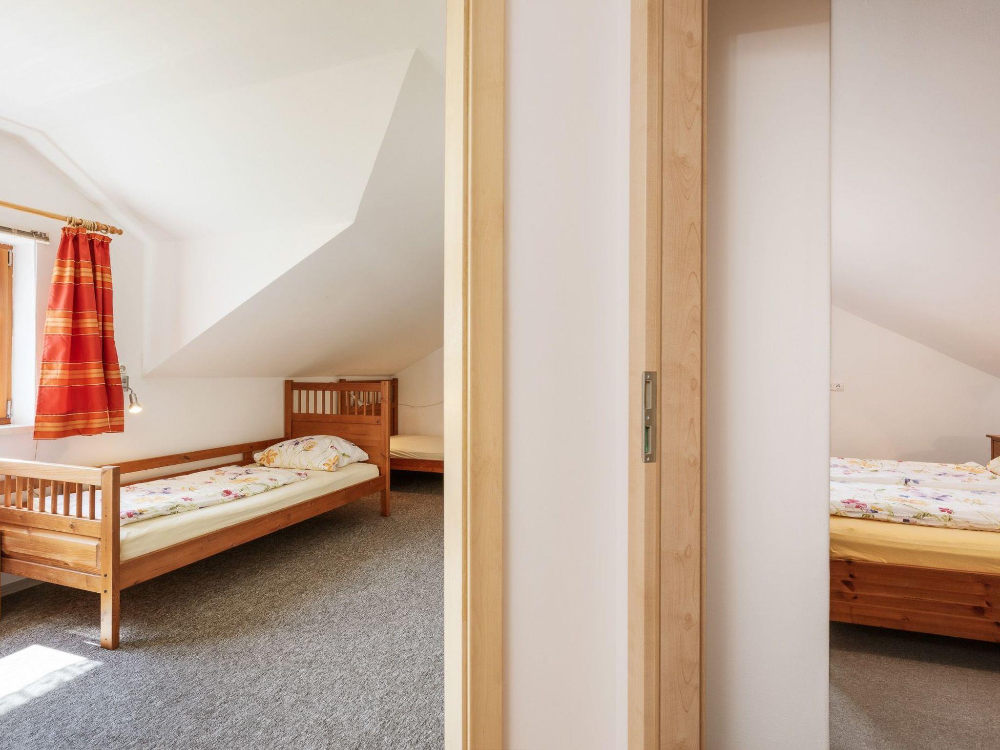 House description: The 70 square metres of living space are arranged on two levels. The living and kitchen area is on the ground floor. On the first floor is the bathroom, a bedroom with a double bed and another bedroom with two single beds and a cot.