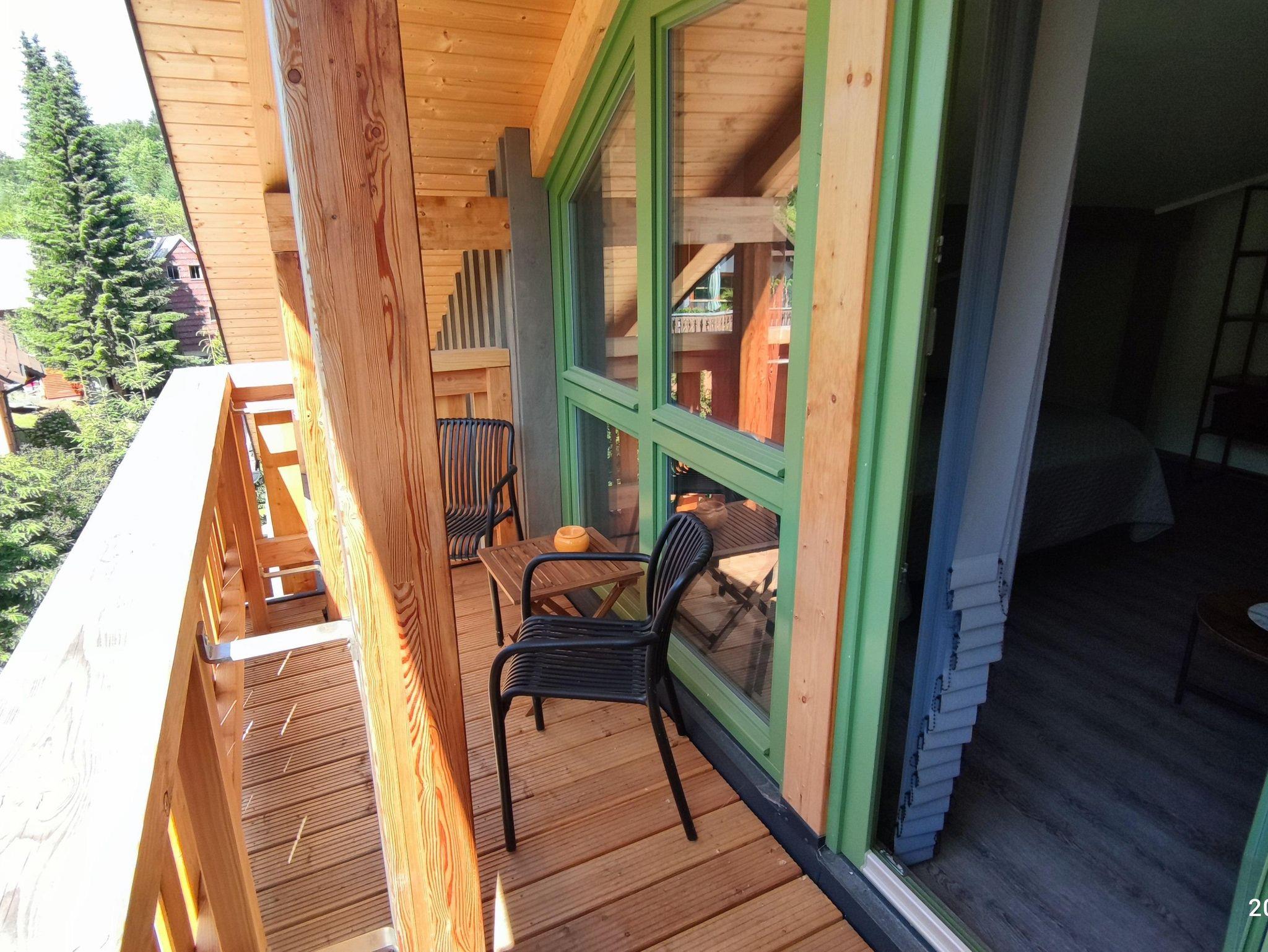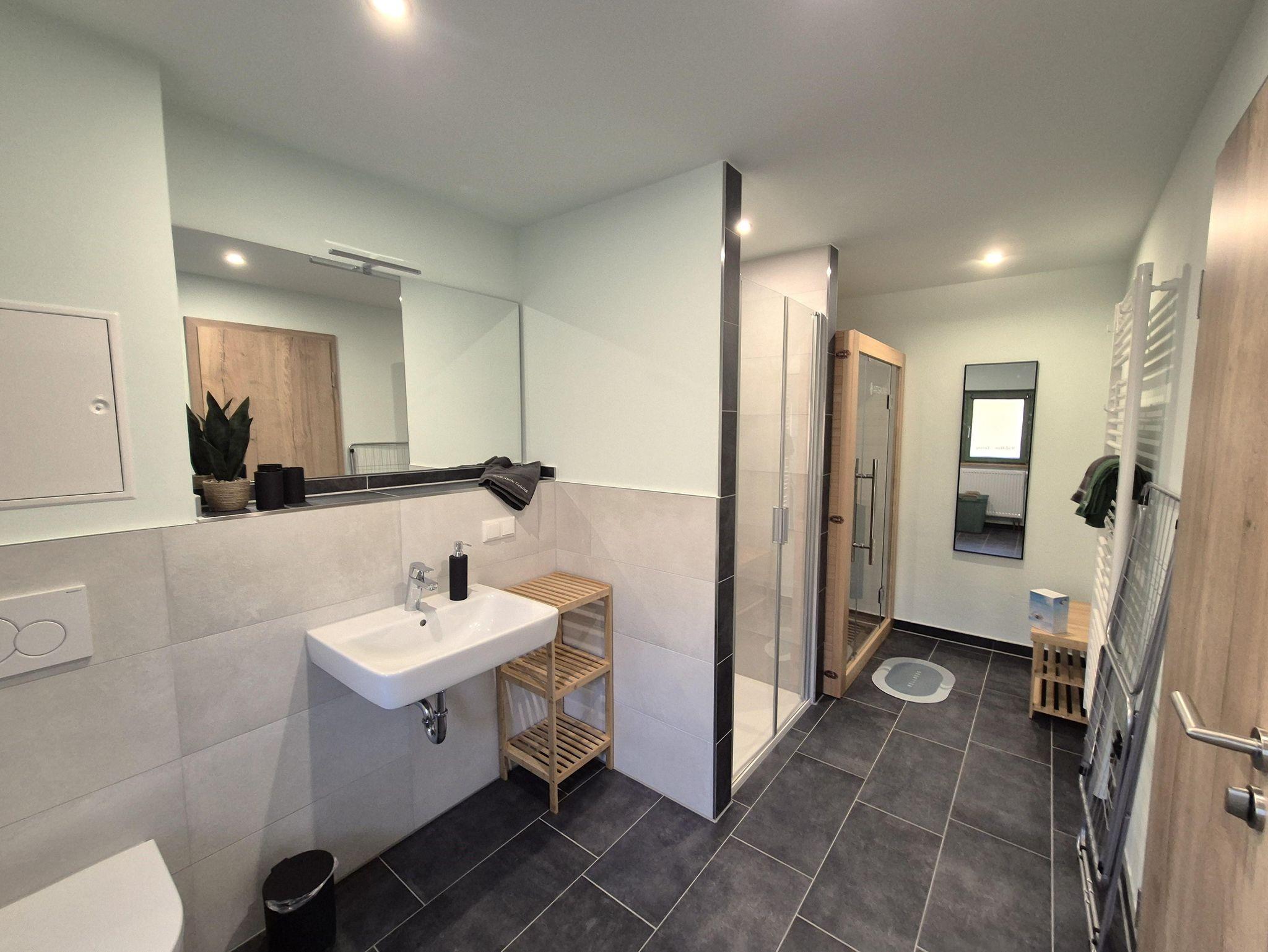 Die FeWo Geisingberg im 1. OG besteht aus Wohnzimmer mit neuer Einbauküche (inklusive Backofen, Mikrowelle und Geschirrspüler) Esstisch, Couch (2 Aufbettungen, 160x200cm), Sat-TV, Bad mit Dusche/WC und Infrarotsauna, über 70cm breite Treppe zum Maisonette-Schlafzimmer im 2.OG, mit Doppelbett (180x200cm) und kleiner Sitzecke; 2 Balkone je vom Schlafzimmer und Wohnzimmer mit Bergblick!