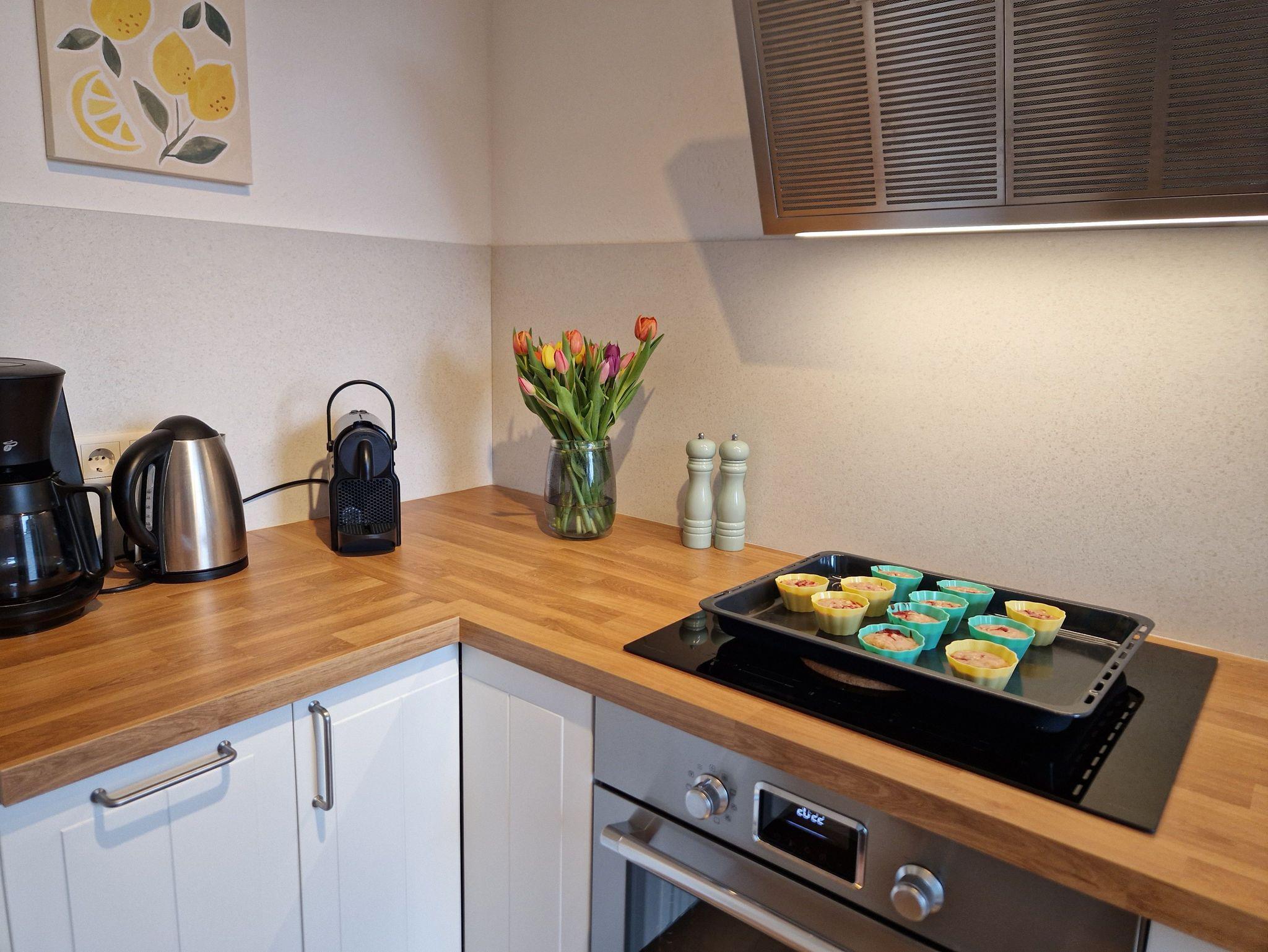 Das Ferienhaus Meerzeit für bis zu 5 Personen (plus 1 Kind bis 12 Jahren und 1 Kleinkind bis 3 Jahren) ist modern nordisch mit maritimen Akzenten gestaltet.