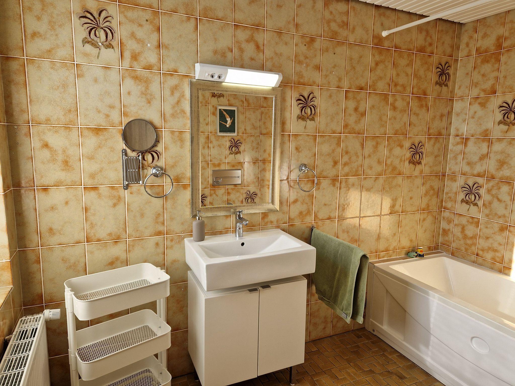 • Badezimmer mit Duschwanne; Handtücher zu buchbar