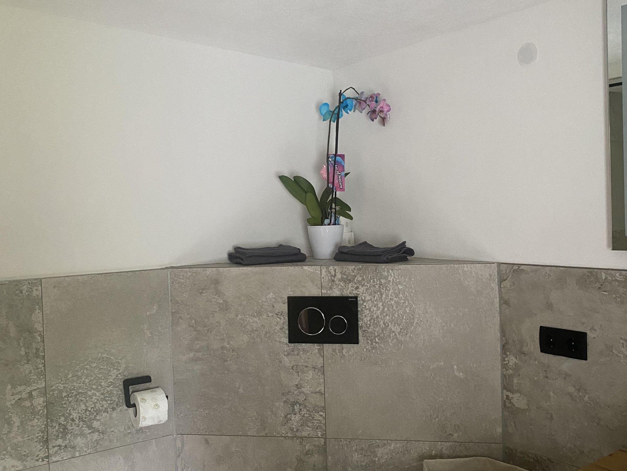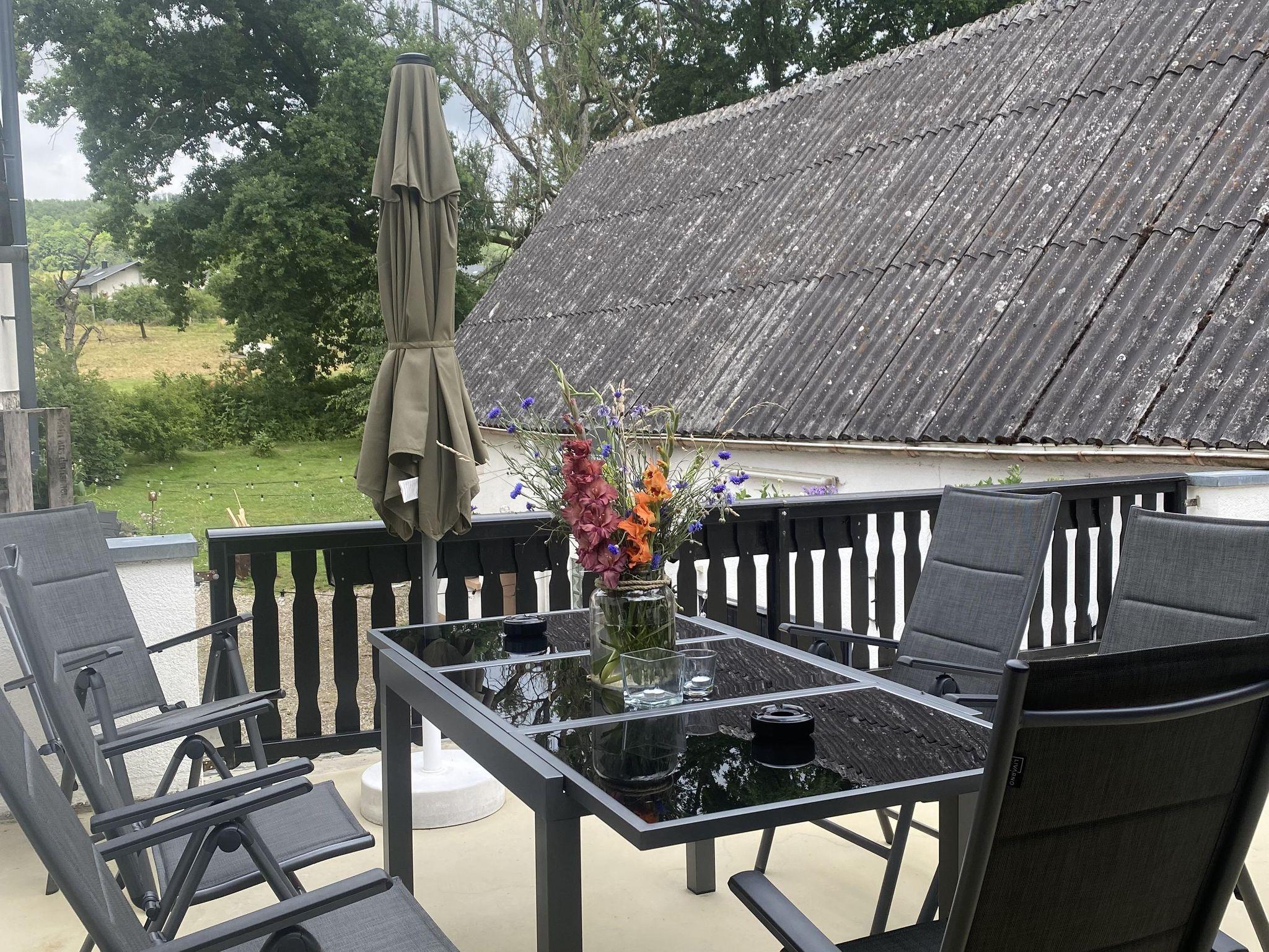 Neben dem privaten kleinen Sitzplatz direkt am Bachbett, stellt die großzügige Dachterrasse das zweite Highlight. Die Terrasse bietet einen tollen Blick in den schönen Innenhof des Anwesens Steinmühle und hat Sitzgelegenheiten für 8 Personen.