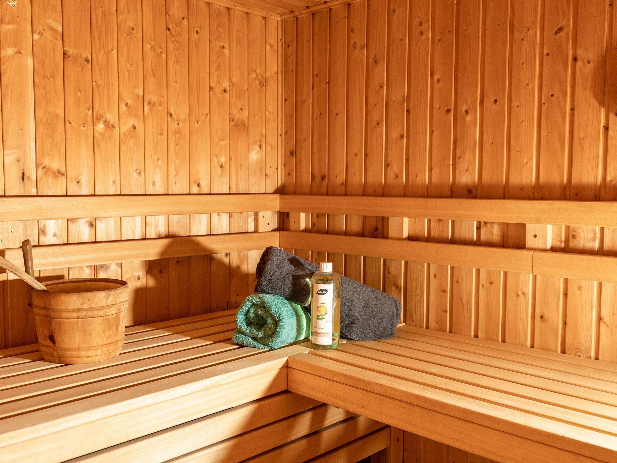 Gästen steht für 15,00 € pro Nutzung (ca. 3 Stunden) eine finnische Sauna (80-90 °C) zur Verfügung die nach Absprache über den direkten Zugang von der Ferienwohnung aus genutzt werden kann. Aufgüsse können mit verschiedenen Aromen eigenständig durchgeführt werden. Spezielle Saunahandtücher können zur Verfügung gestellt werden.