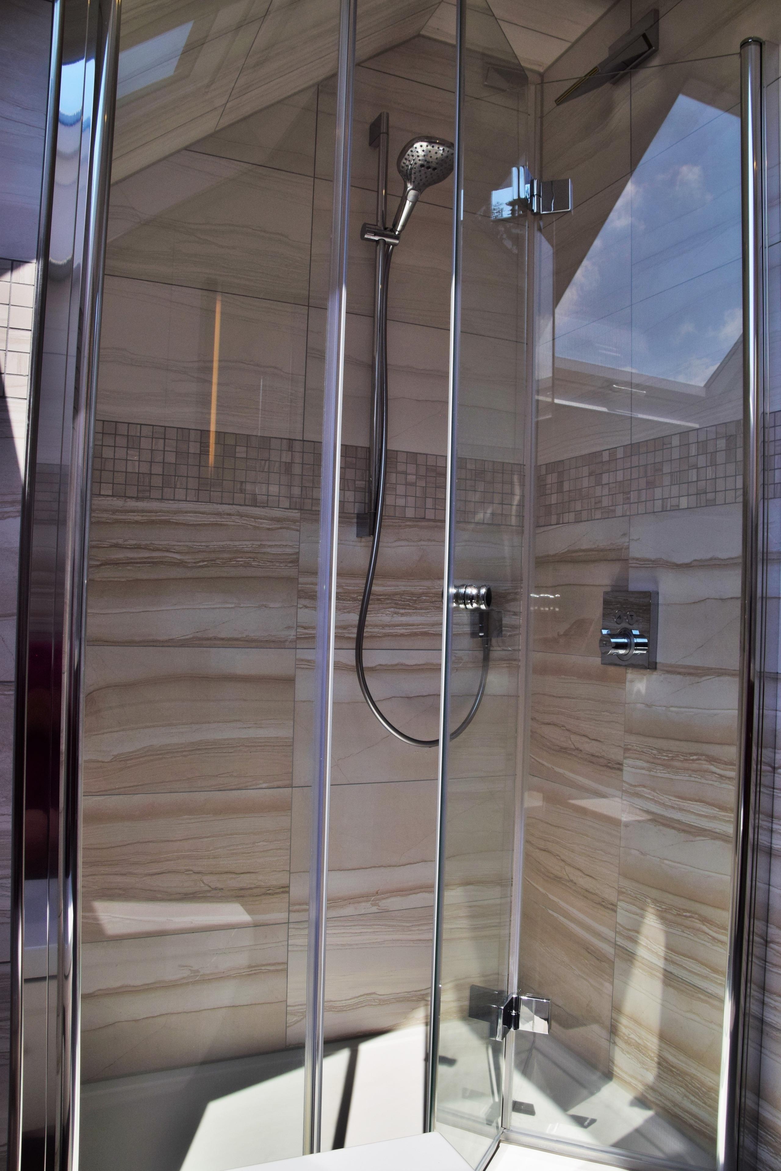 Badrum med dusch och badkar