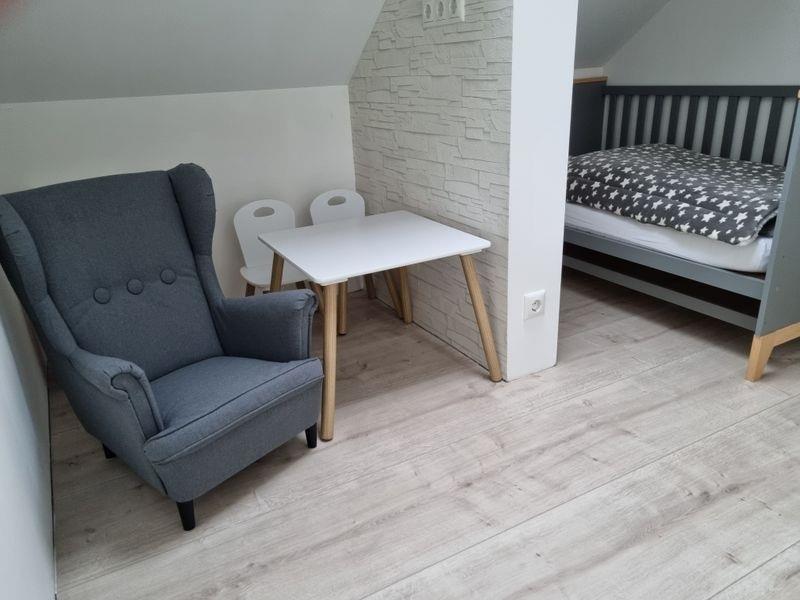 Das Dachgeschoss erreichen Sie ebenfalls über eine Treppe. Hier haben wir für Sie zwei Superior- Gäste-/Schlafzimmer und ein kleines Bad mit WC und Dusche hergerichtet.