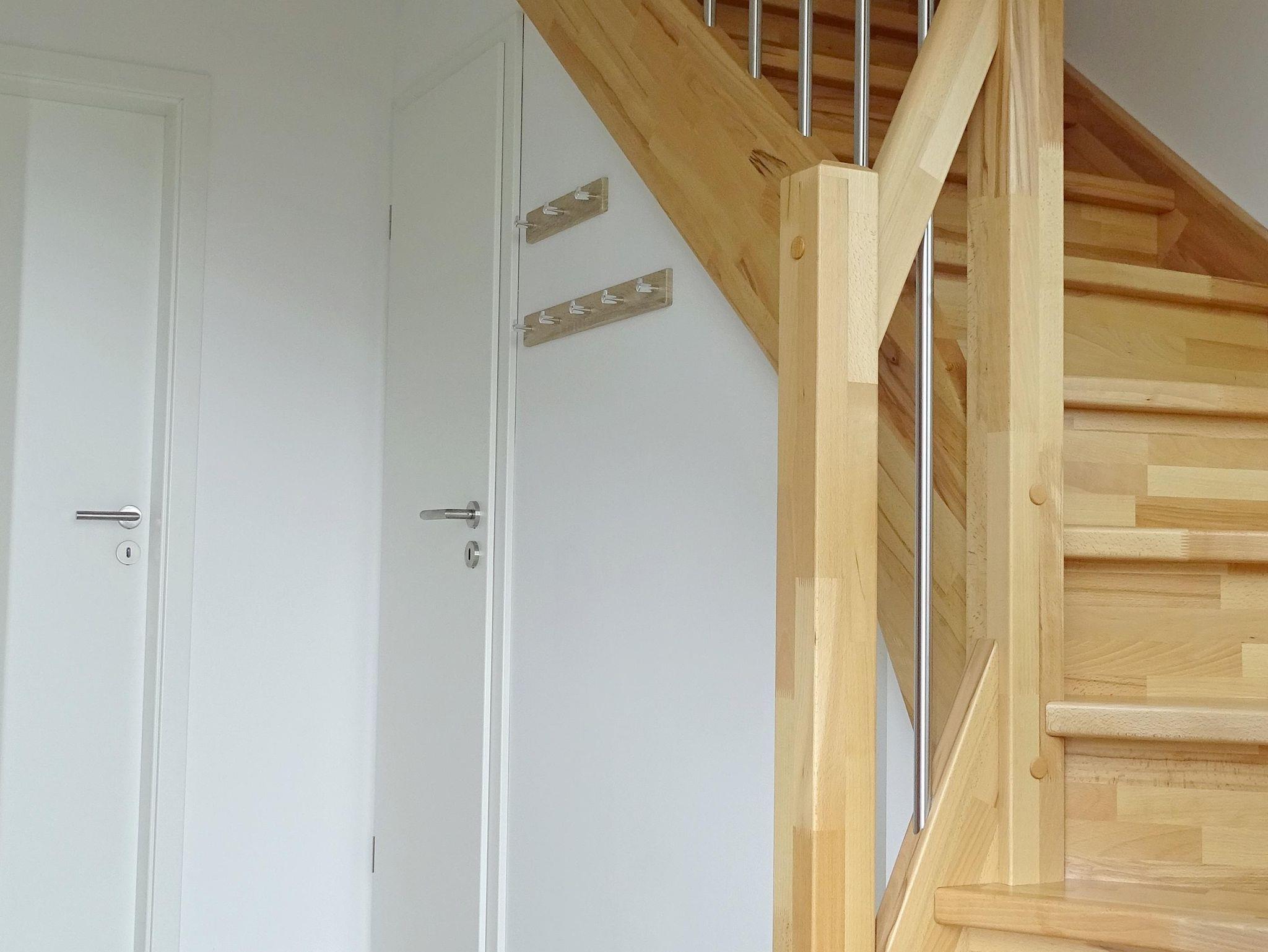Eingang über Flur mit Zugang zum Wohnzimmer und Küche. In dieser Halle befinden sich auch die Toilette und die Treppe zum 1. Stock.