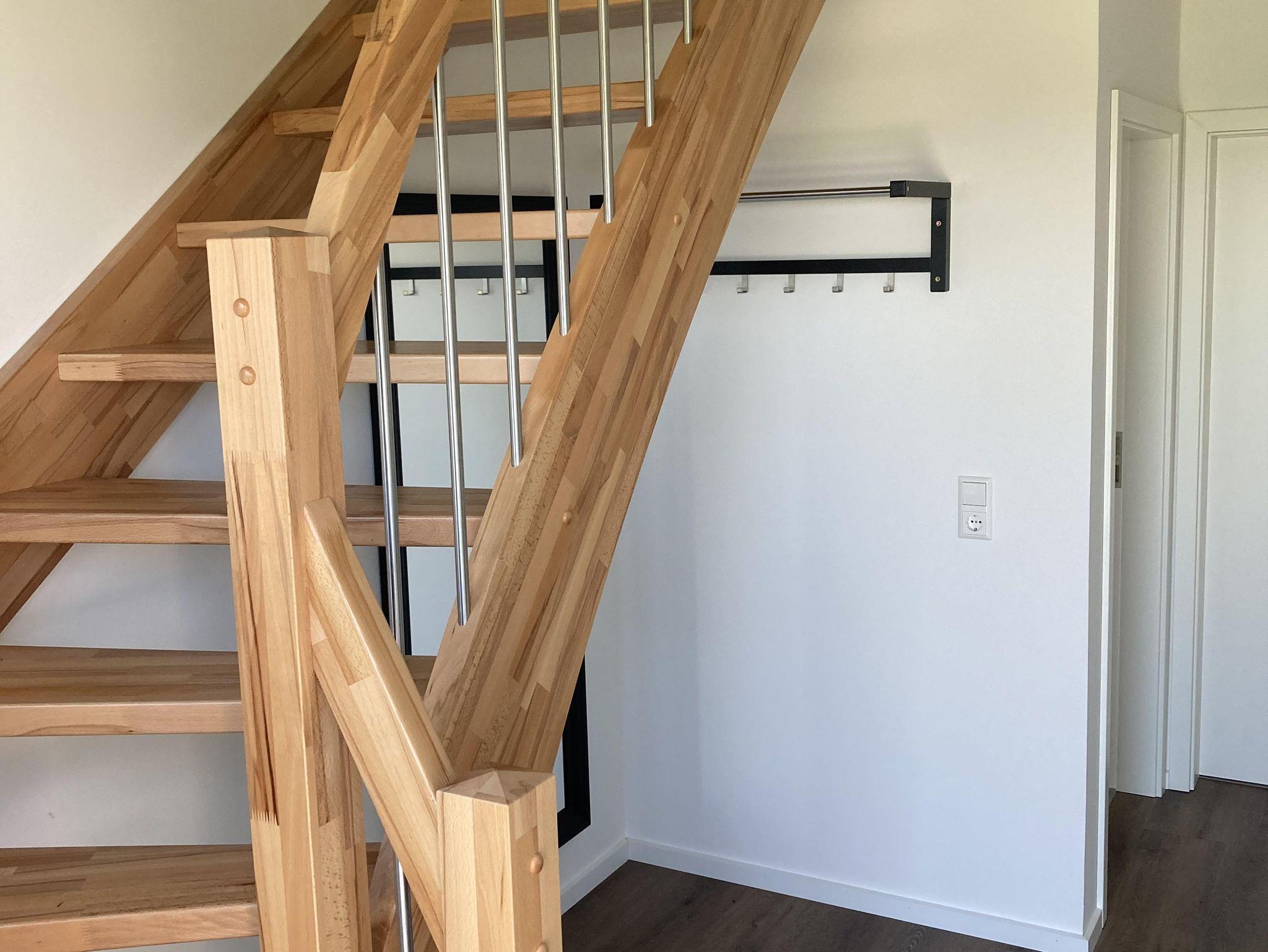 Dieses Haus wurde 2021 fertiggestellt. Eingang über die Diele mit Zugang zum Wohnzimmer, Schlafzimmer, Badezimmer mit WC und die Treppe in den 1. Stock.