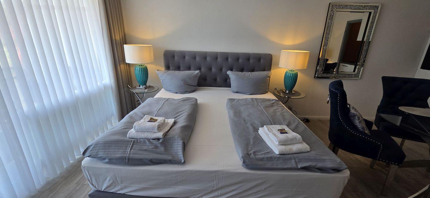 - Doppelbett 1,80x2m und Schlafcouch (Erstaustattung Bettwäsche & Handtücher)