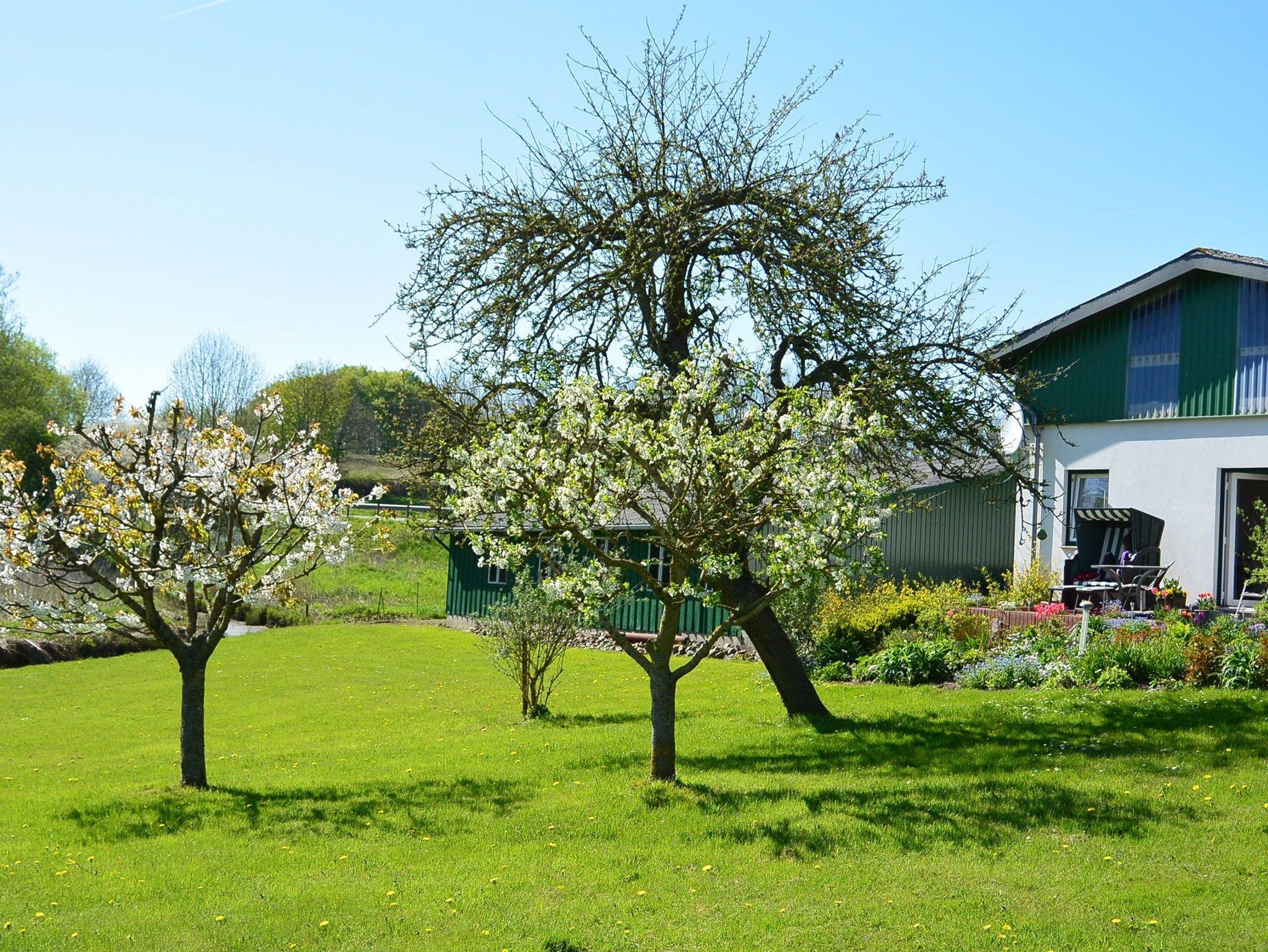 Diese liegen sehr schön, direkt am Grödersbyer Noor an der Schlei. Auf dem Grundstück befinden sich die möblierten Terrassen und der große Garten mit Liegeweise.