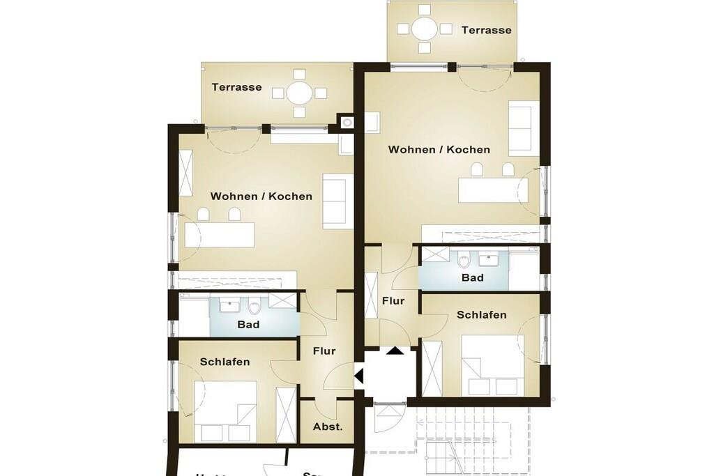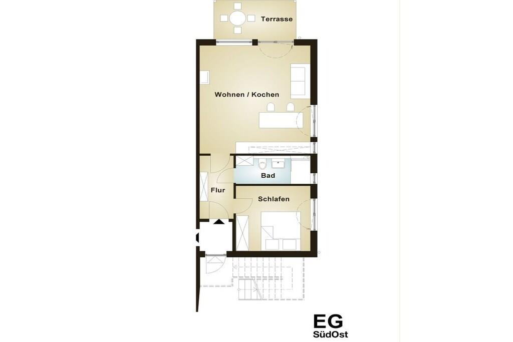 Bottenvåningen: (Vardagsrum(Bäddsoffa 1 pers., matbord), Kök(öppen spis), sovrum(dubbelsäng), badrum(dusch)) Tillgång till Internet, Tillgång till Internet, terrass