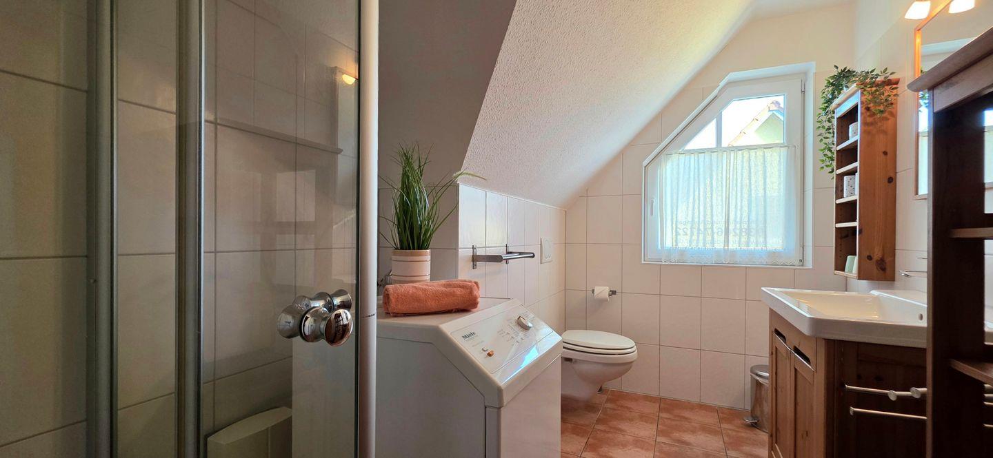 - ein Duschbadezimmer mit Waschmaschine