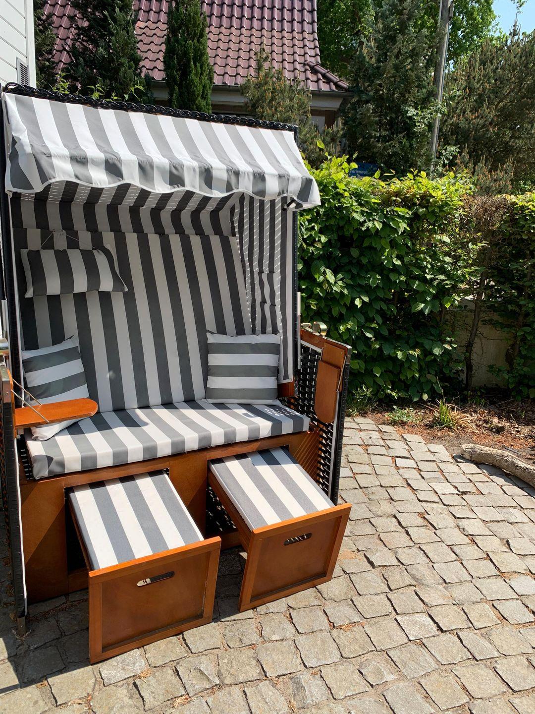 • Möblierte Terrasse (30 m²) mit Strandkorb und Sonnenschirm – ideal zum Entspannen, Frühstücken oder Sonnen