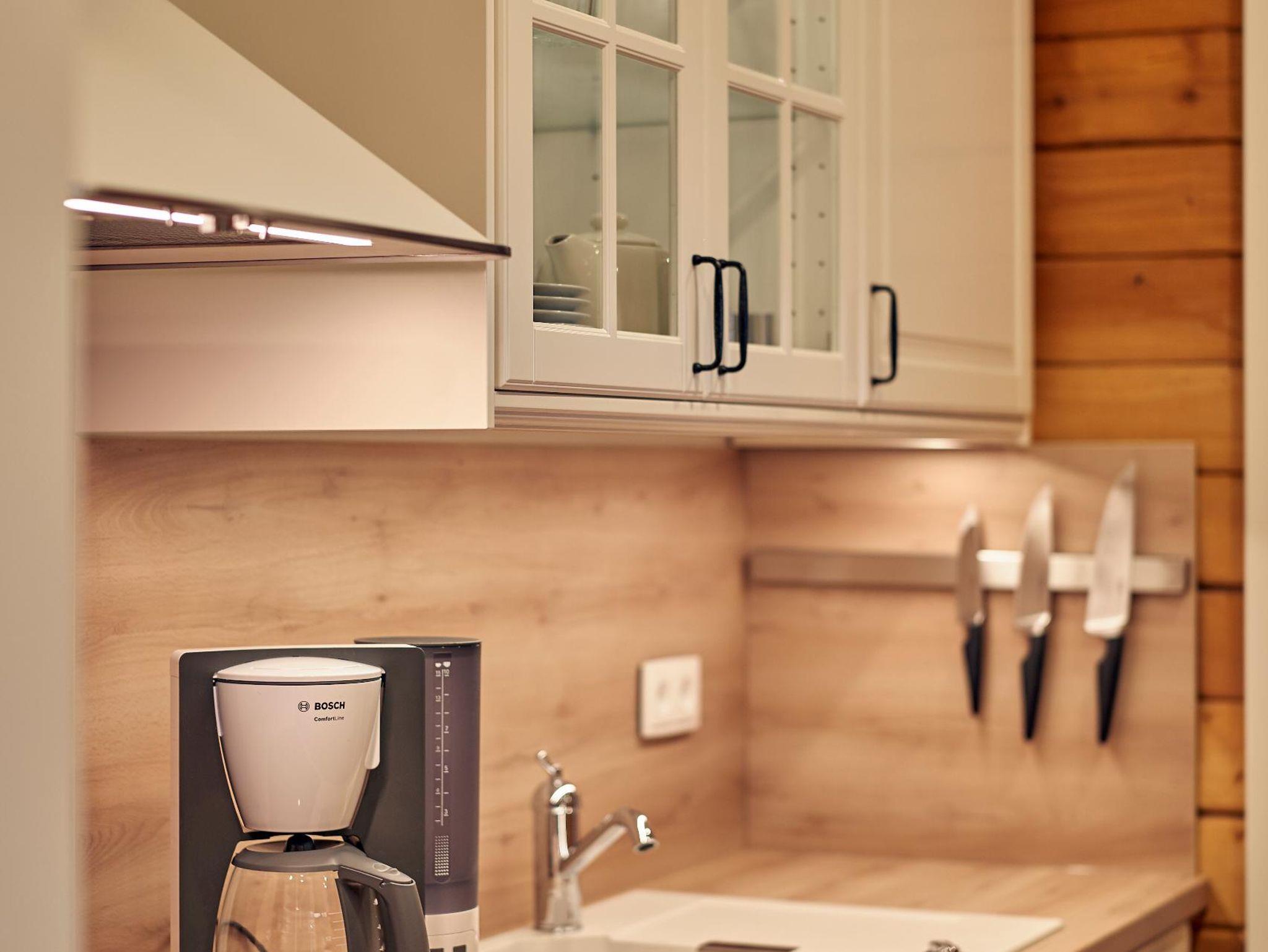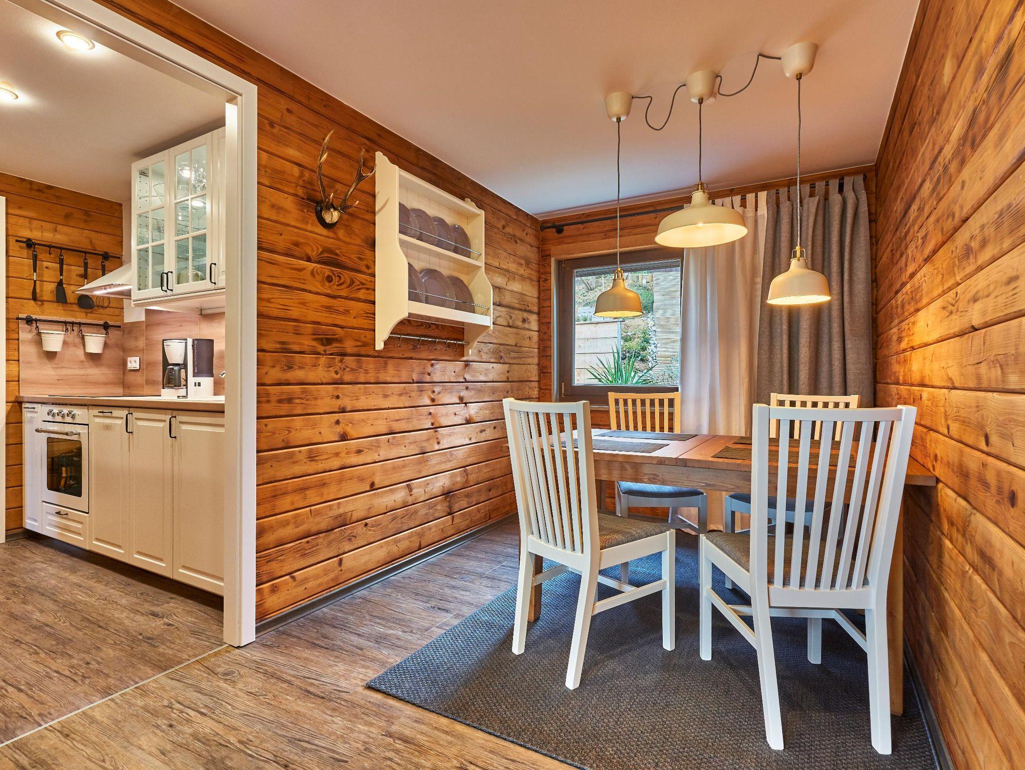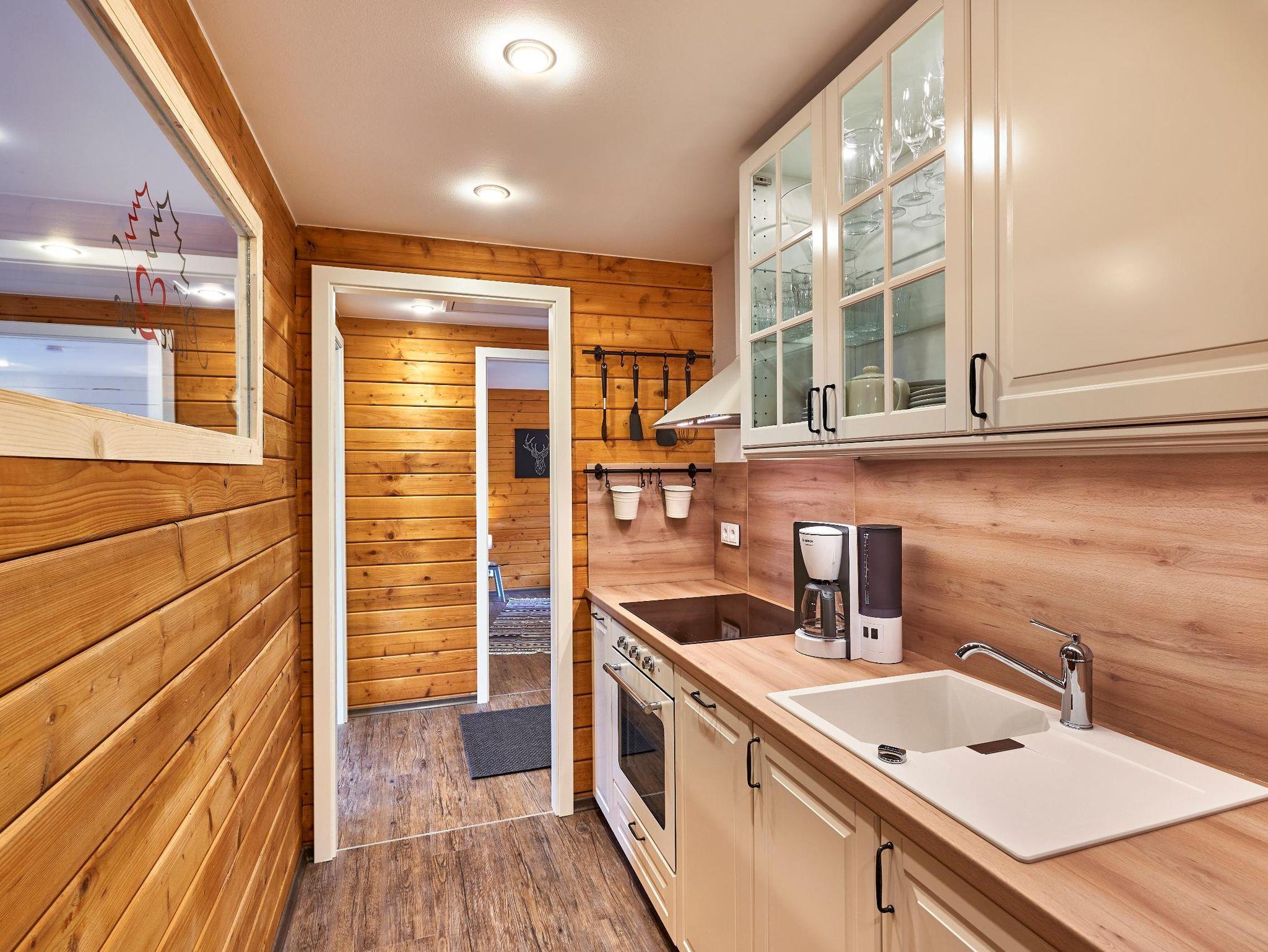 Im Inneren erwartet Sie ein modernes, gemütliches Wohnambiente mit viel Holz, großzügigem Wohn- und Essbereich sowie einem Kaminofen, der besonders an kühleren Tagen für eine angenehme Wohlfühlatmosphäre sorgt. Die voll ausgestattete Küche lässt keine Wünsche offen und eignet sich ideal für Selbstversorger.