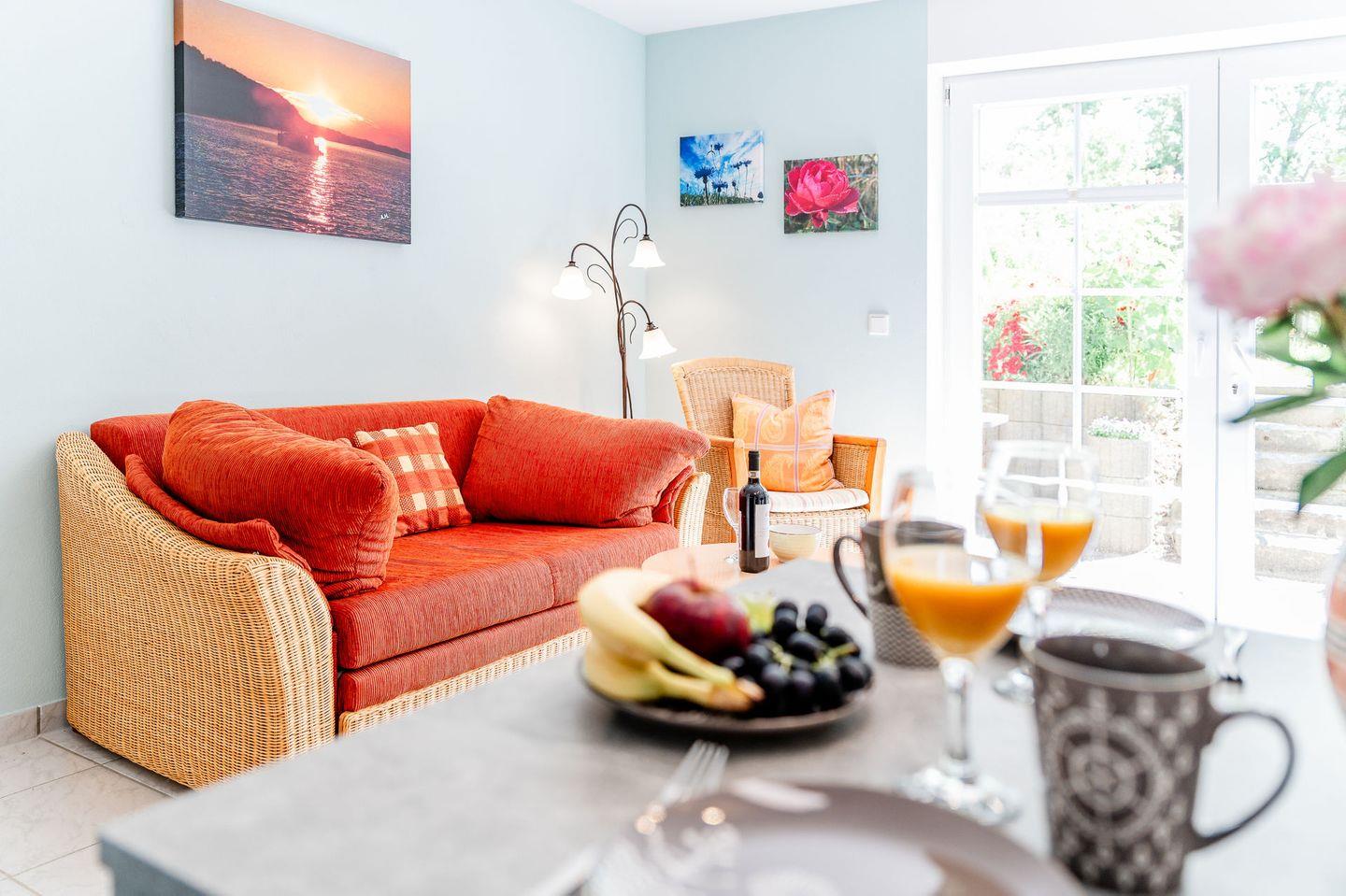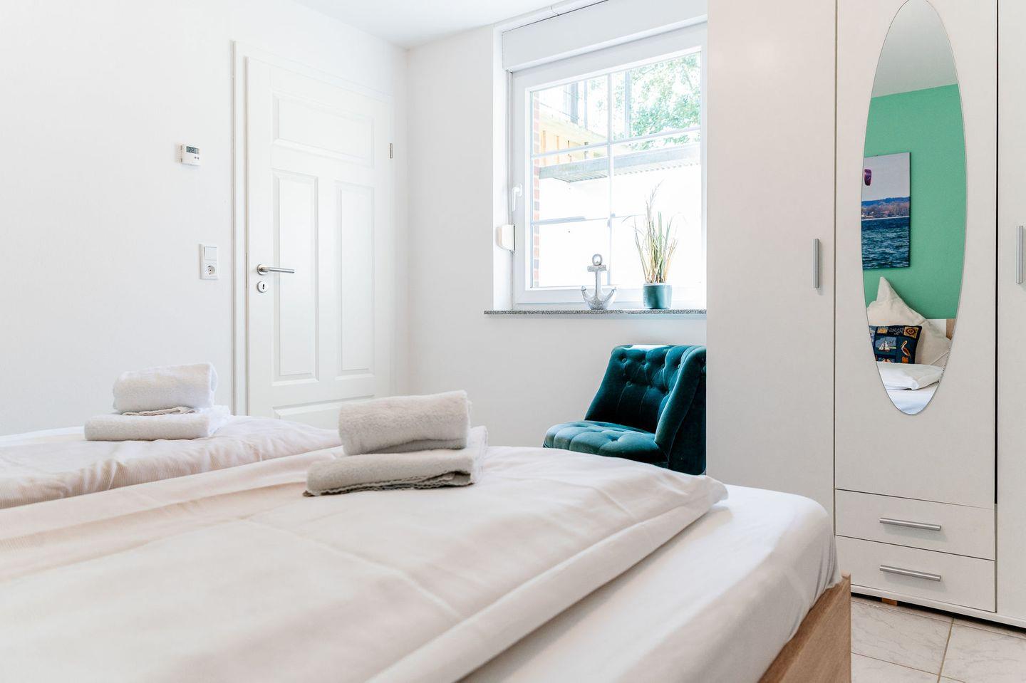 Highlights: zwei Schlafzimmer für bis zu 4 Personen, Helle, Terrasse mit Gartenblick, Ruhige Lage in Ostseenähe, WLAN & Parkplatz (Wallbox vorhanden)