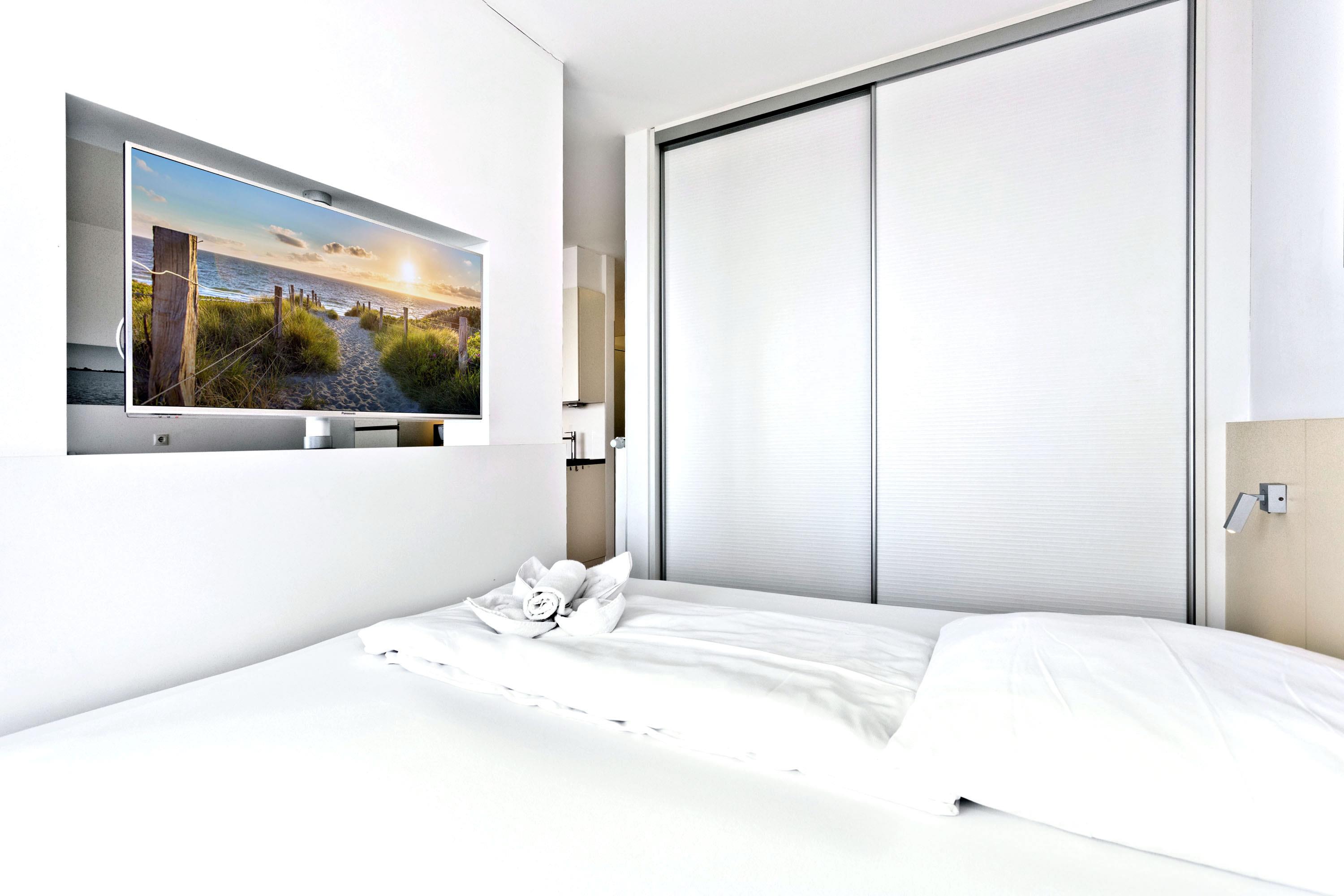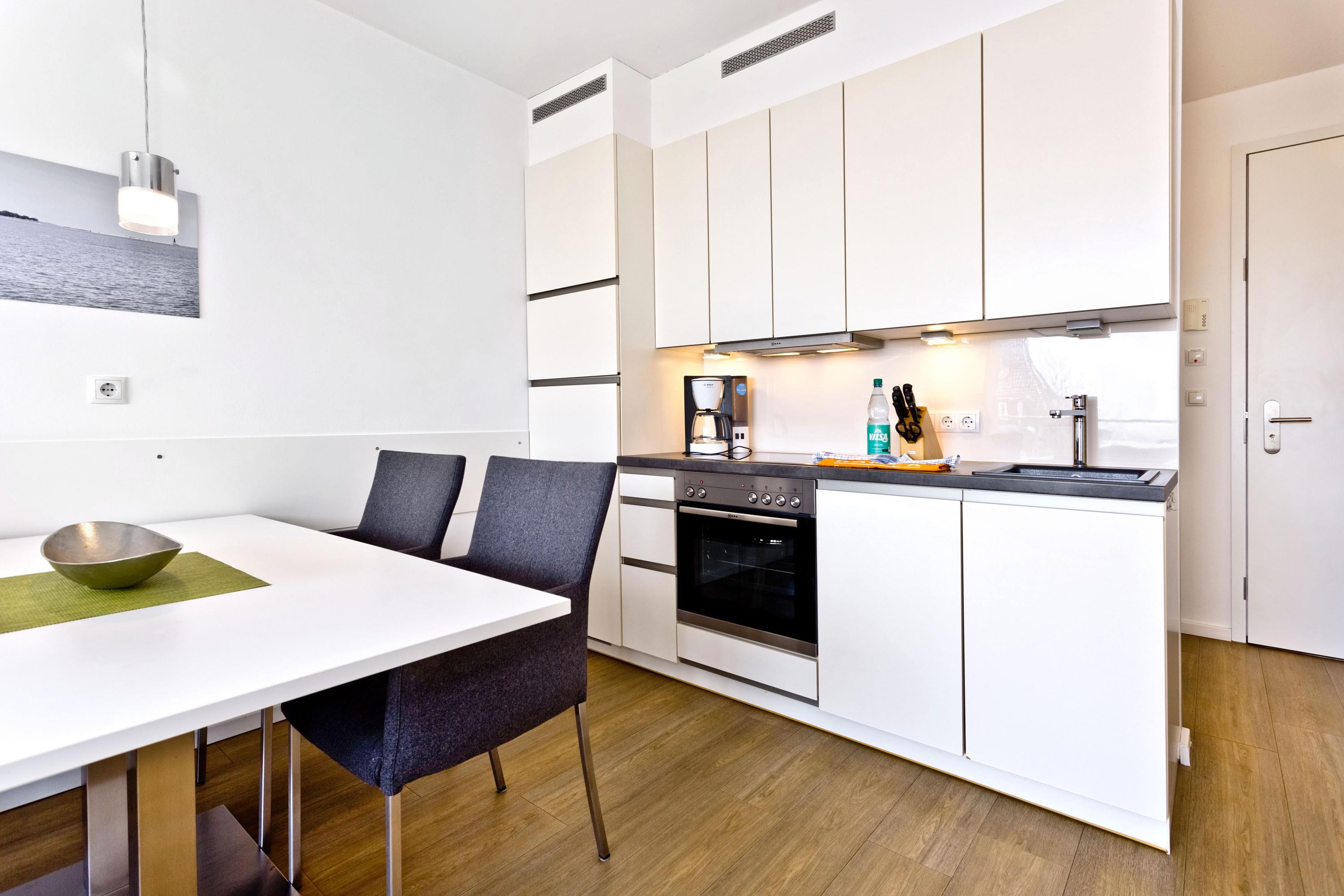 Wohlfühlappartement mit Seesicht in der 3. Etage! Hochwertig ausgestattet für 2 Pers. Großer Balkon mit Seesicht (ost), vollständige Küchenzeile mit Mikrow., Geschirrspüler etc., der Schlafbereich ist über Außenjalousien abzudunkeln, SAT-TV (drehbar zum Bett), Blue-Ray-DVD, CD-Kompaktanlage, USB-Steckdosen, kostenloses W-Lan-Internet, allergikerfreundlich, ebenerdige Dusche/WC, Föhn, freie Saunanutzung, breiter Stellplatz in der Tiefgarage, keine Haustiere und natürlich Nichtraucher.