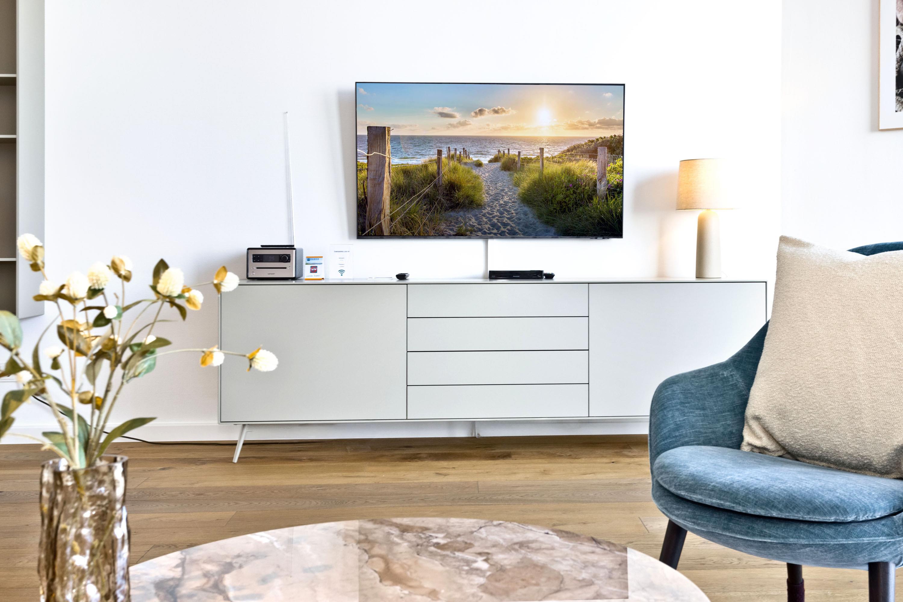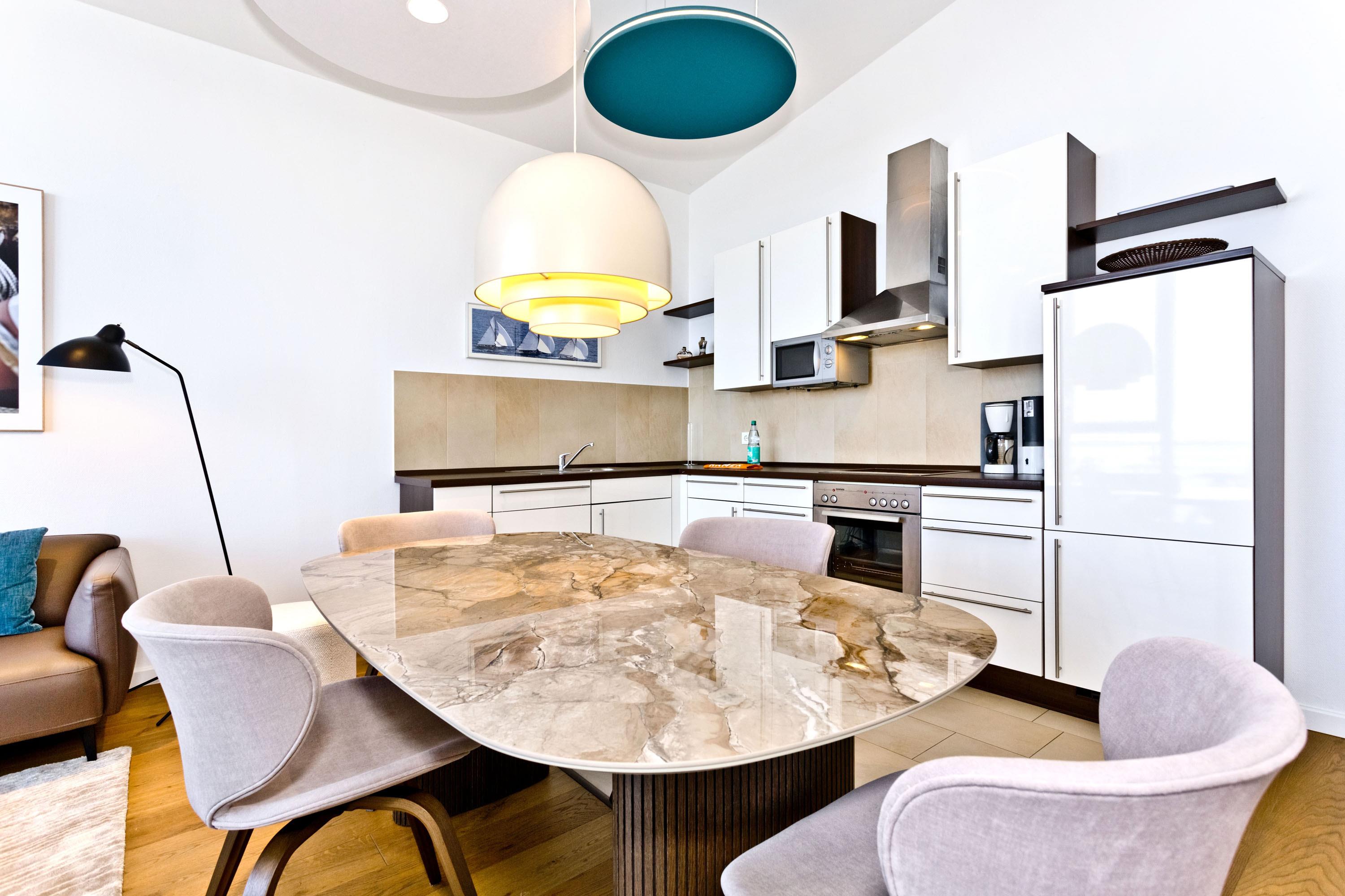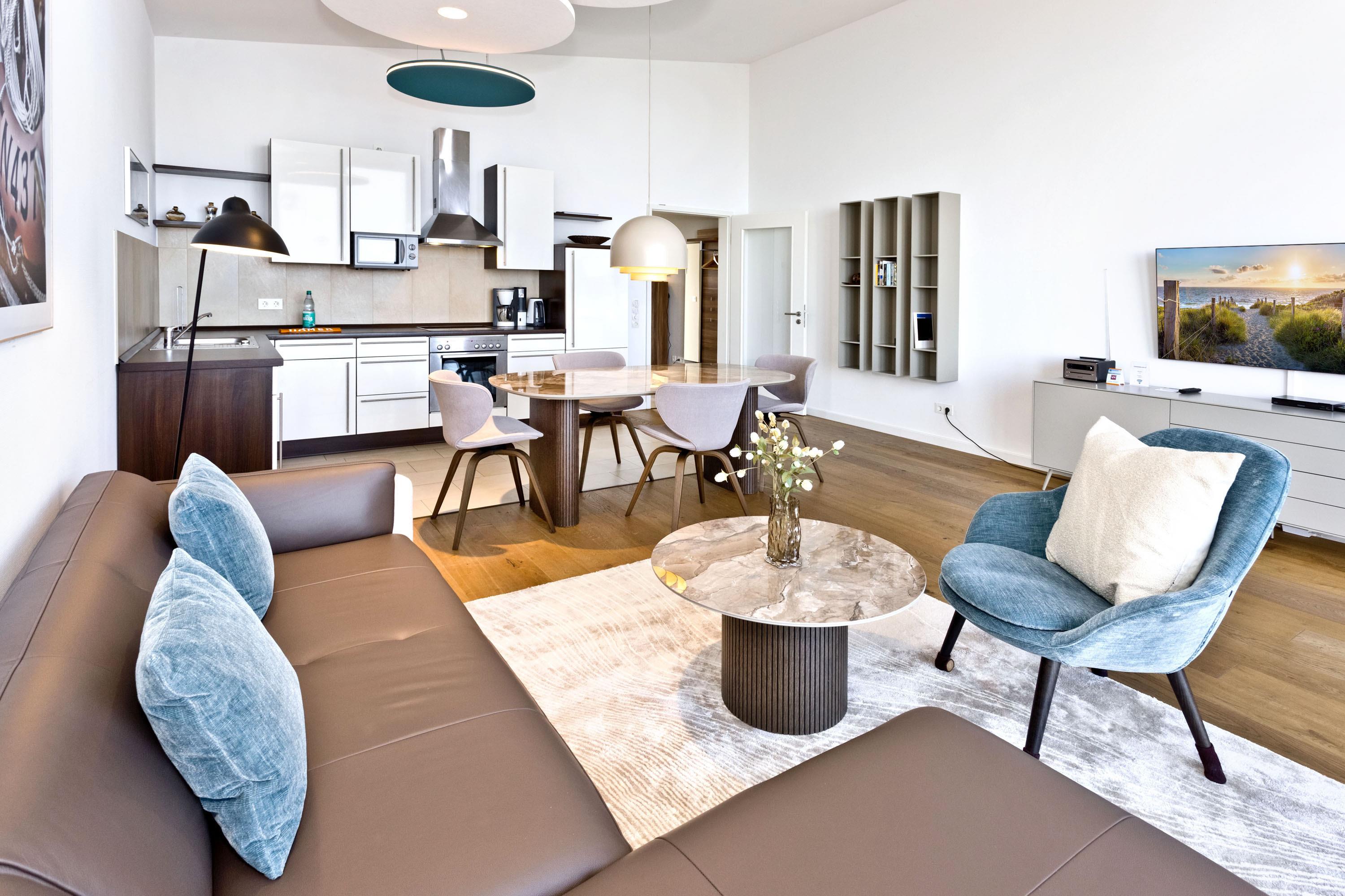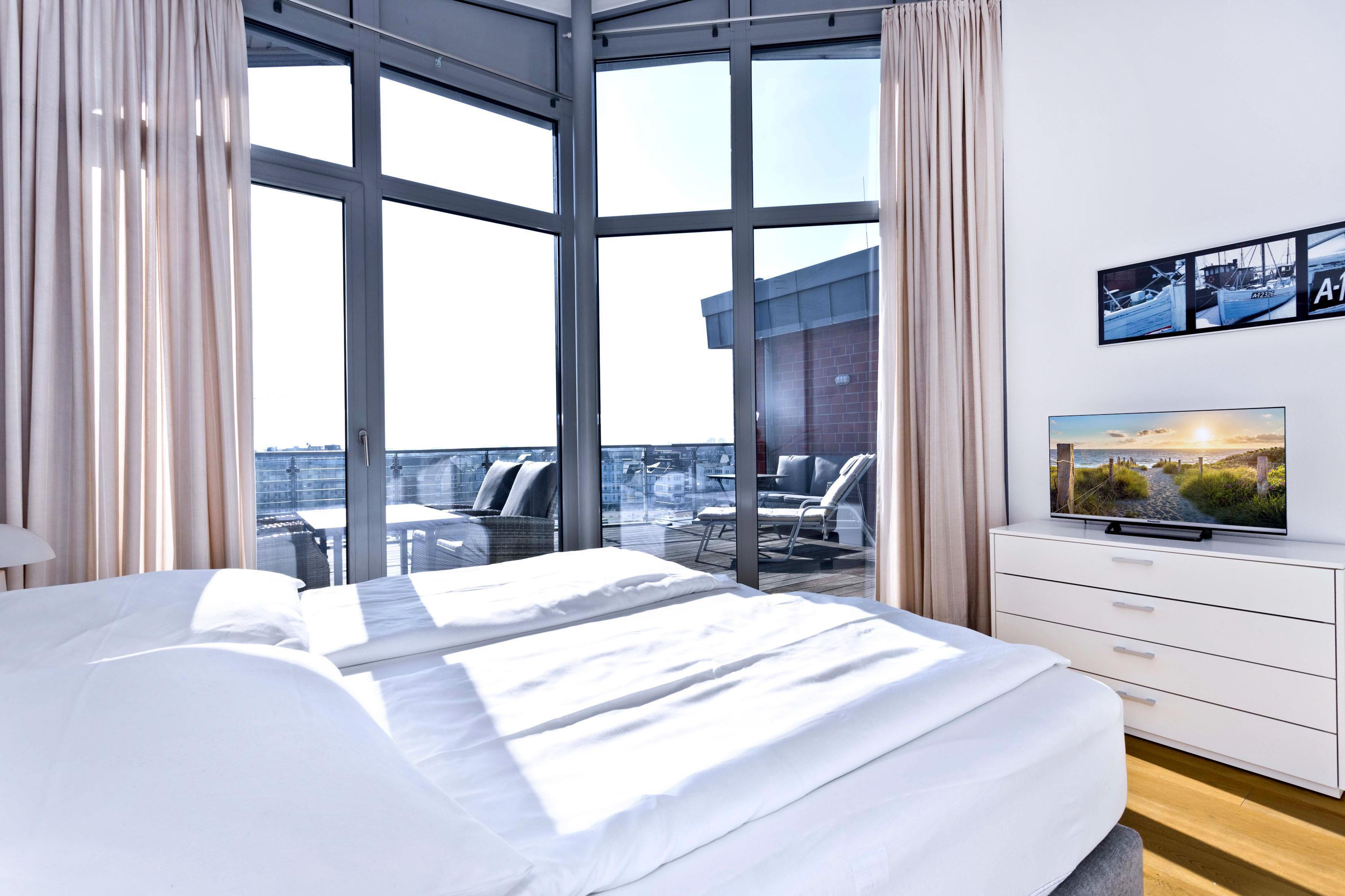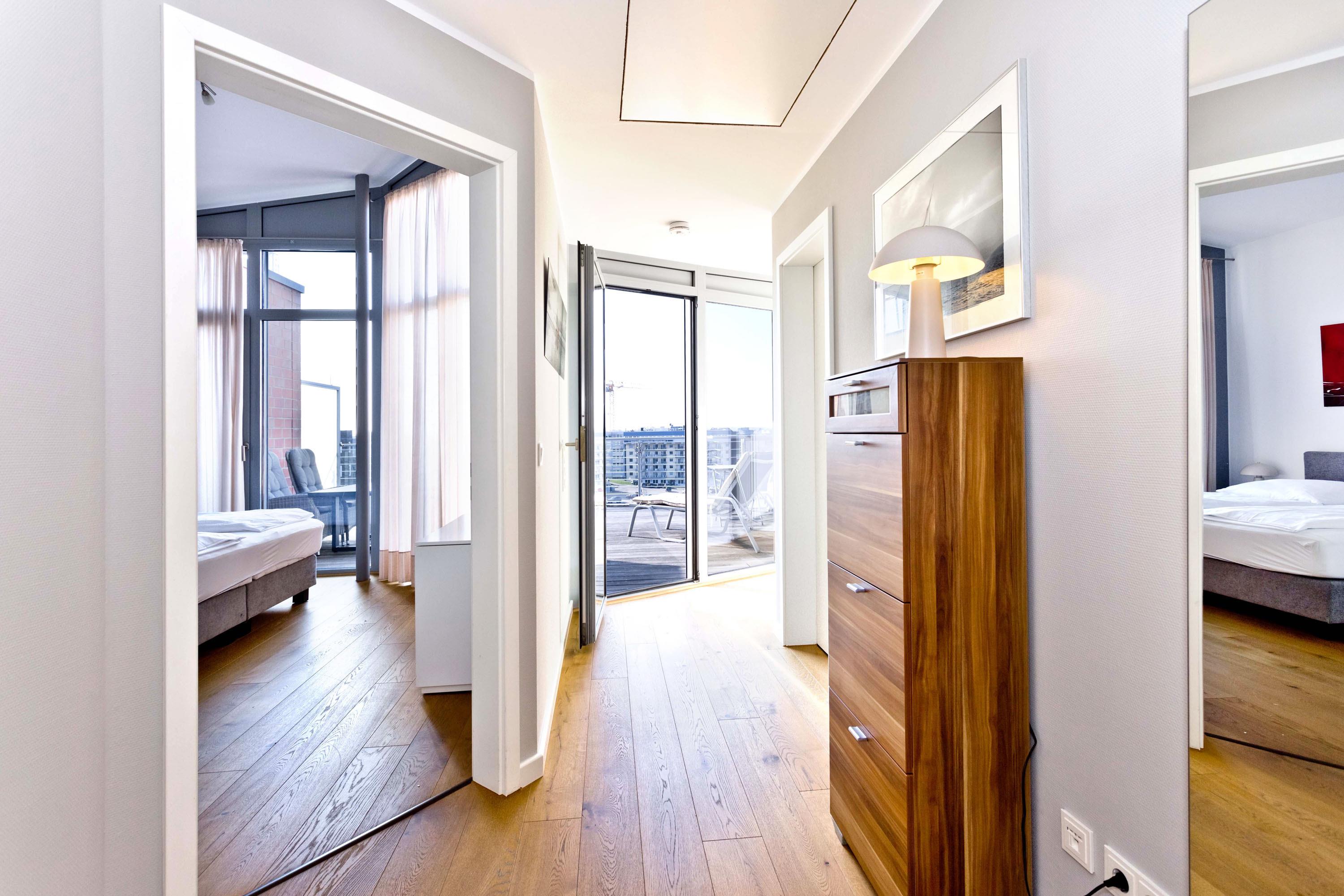 Die Penthousewohnung! 5.Etage mit dem absoluten Blick auf den Elbstrom (Die Webcam befindet sich an dieser Whg). Wohnzimmer mit Esstisch und geschmackvoller Sitzecke, TV, Stereoanlage, Balkon zur Seeseite, riesige Terrasse zur Südseite mit Blick auf den Hafen, vollständig ausgestattete Küchenzeile, Schlafzimmer mit Doppelbett (Boxspringbett), TV und elektr. Rollläden, Bad/Du/Wc mit Fön, die gesamte Wohnung ist hochwertig mit Parkett bzw. Fliesen ausgestattet, Fußbodenheizung, je ein reservierter Pkw-Stellplatz außen u. i. der Tiefgarage, keine Haustiere und natürlich Nichtraucher.