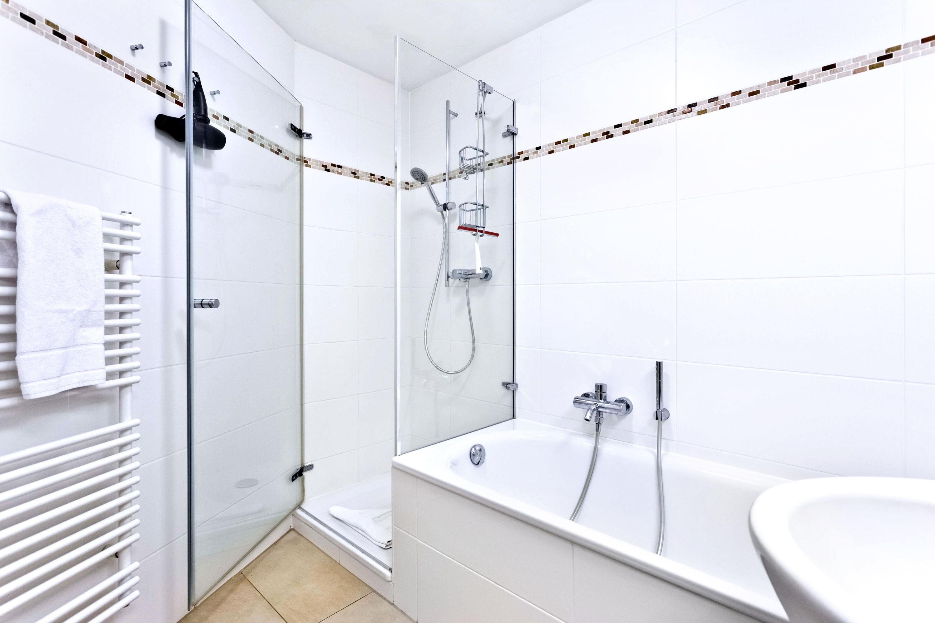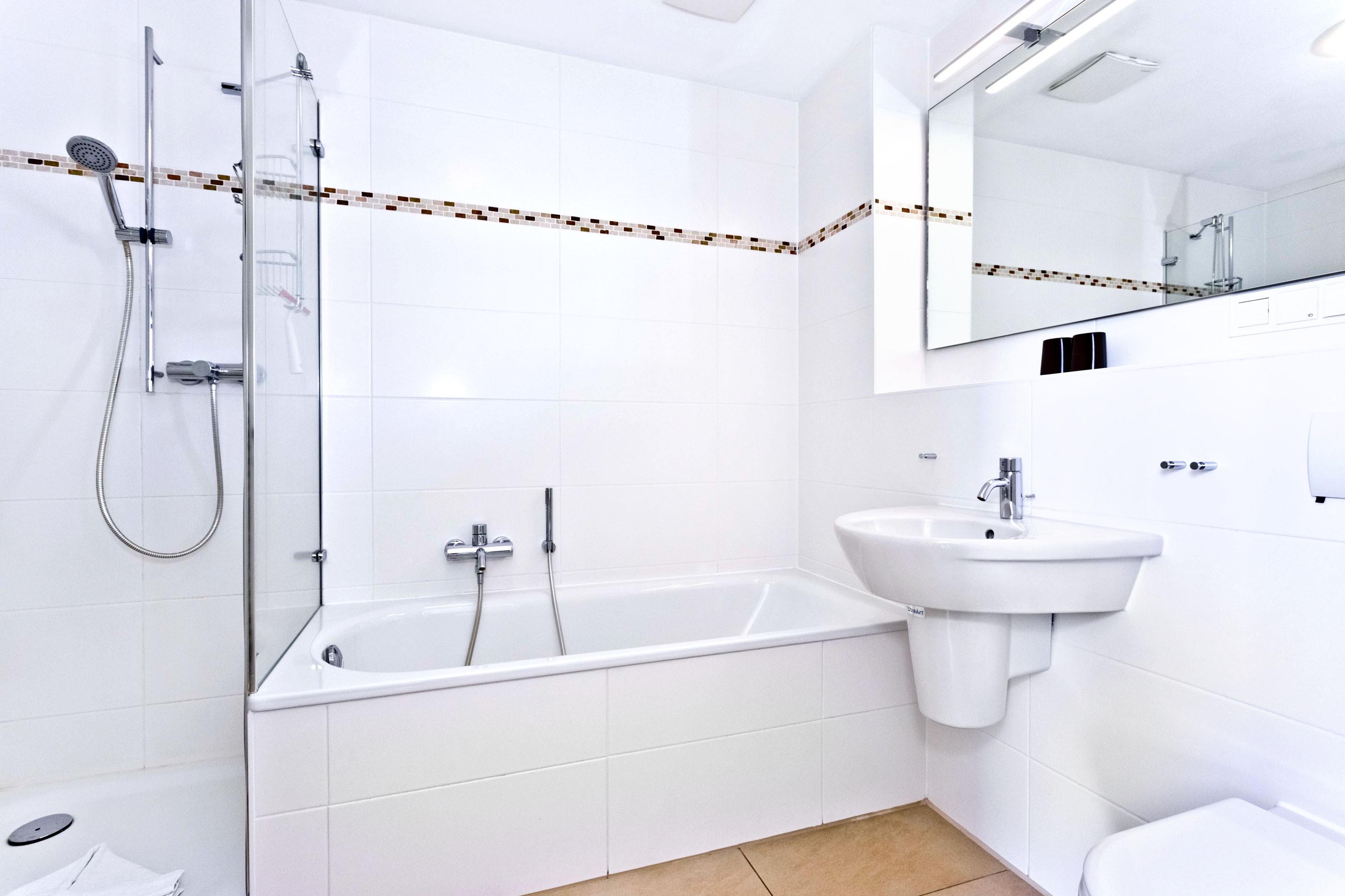Badrum med dusch och badkar