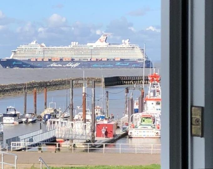 Willkommen in der Ferienwohnung Se 14 im Haus Seeterrassen – Ihrem idealen Ort für einen erholsamen Urlaub mit Meerblick in Cuxhaven. Das Haus liegt direkt hinter dem Deich und bietet Ihnen beste Voraussetzungen für entspannte Tage an der Nordsee. Vom kleinen, windgeschützten Balkon genießen Sie den freien Blick auf das Meer und beobachten die vorbeiziehenden Schiffe auf dem Weltschifffahrtsweg – echtes Hafenflair inklusive.