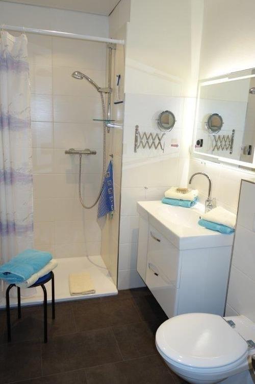 Das Schlafzimmer (ca. 11 m²) verfügt über ein komfortables Doppelbett (200 x 180 cm) mit elektrischer Verstellung, Flachbild-TV und Radiowecker. Das moderne Badezimmer (ca. 6 m²) ist mit einer bodengleichen Dusche und Föhn ausgestattet.