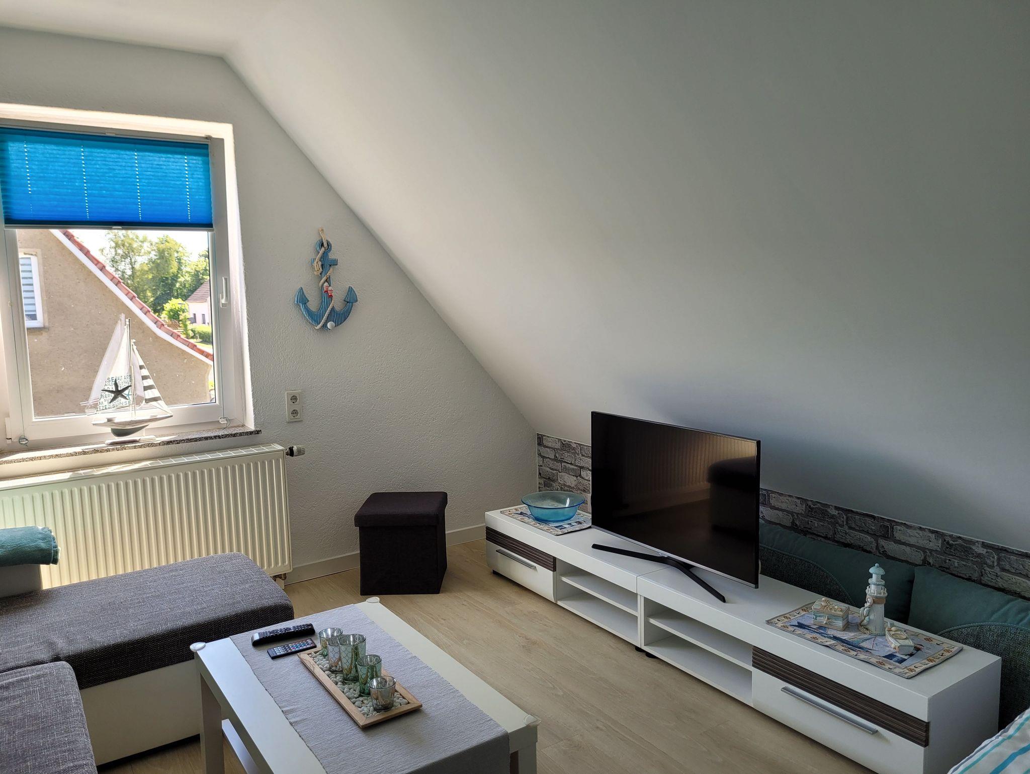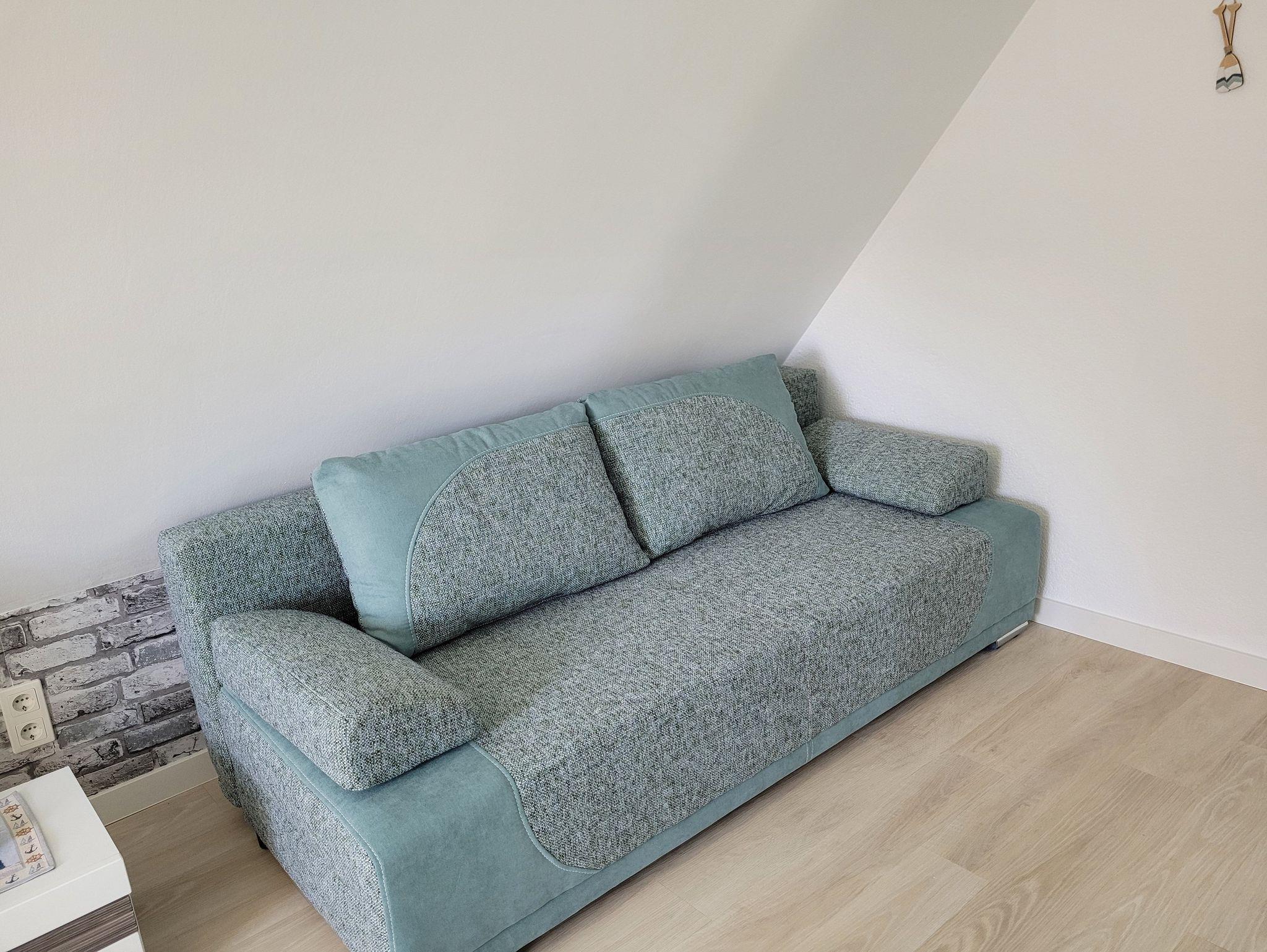 Der helle Wohnbereich lädt mit einem bequemen Schlafsofa (1,40m x 2,00m) zum Entspannen ein ? perfekt für Kinder oder zusätzliche Gäste. Ein Fernseher sowie WLAN sorgen für Unterhaltung.
