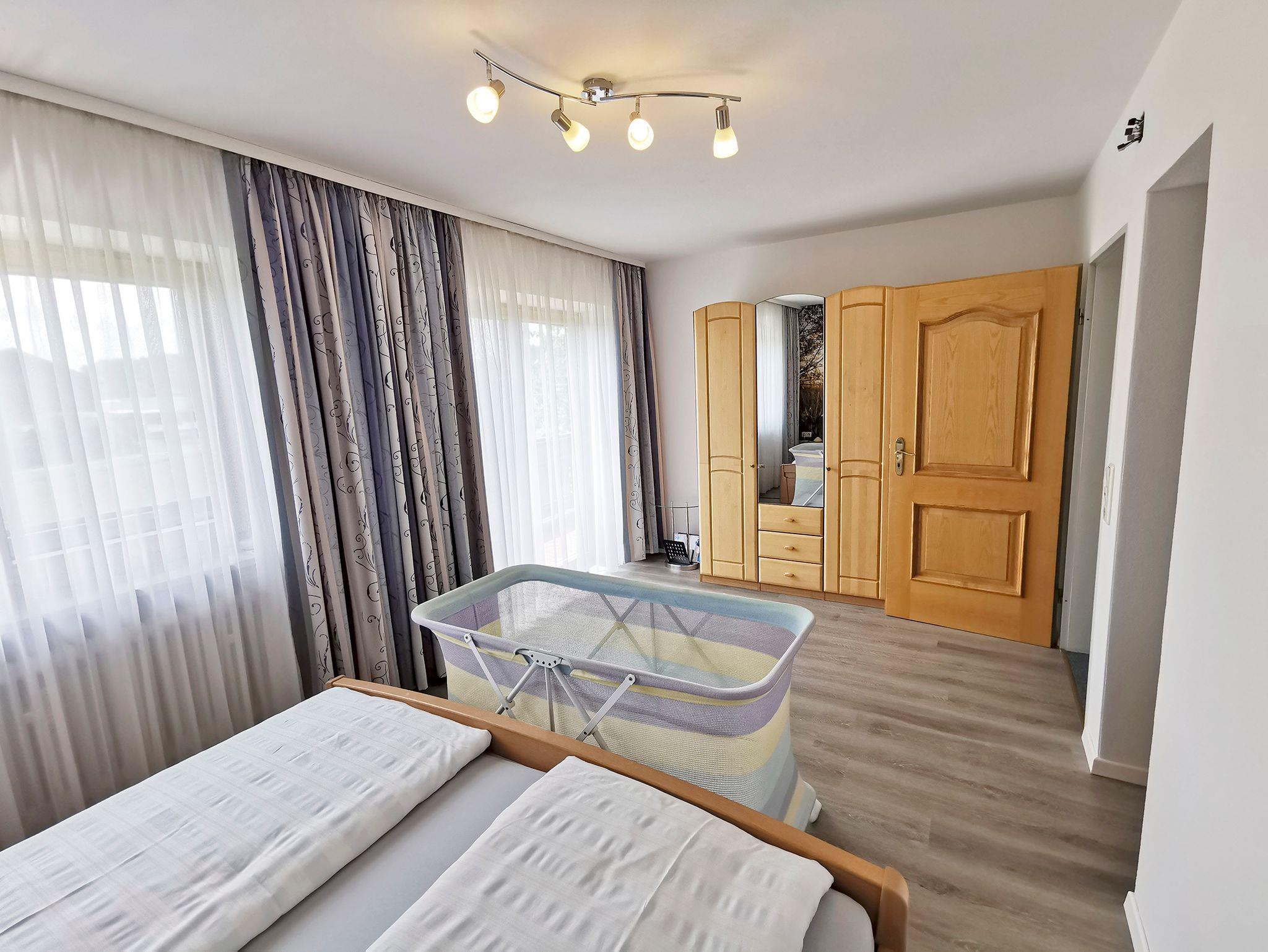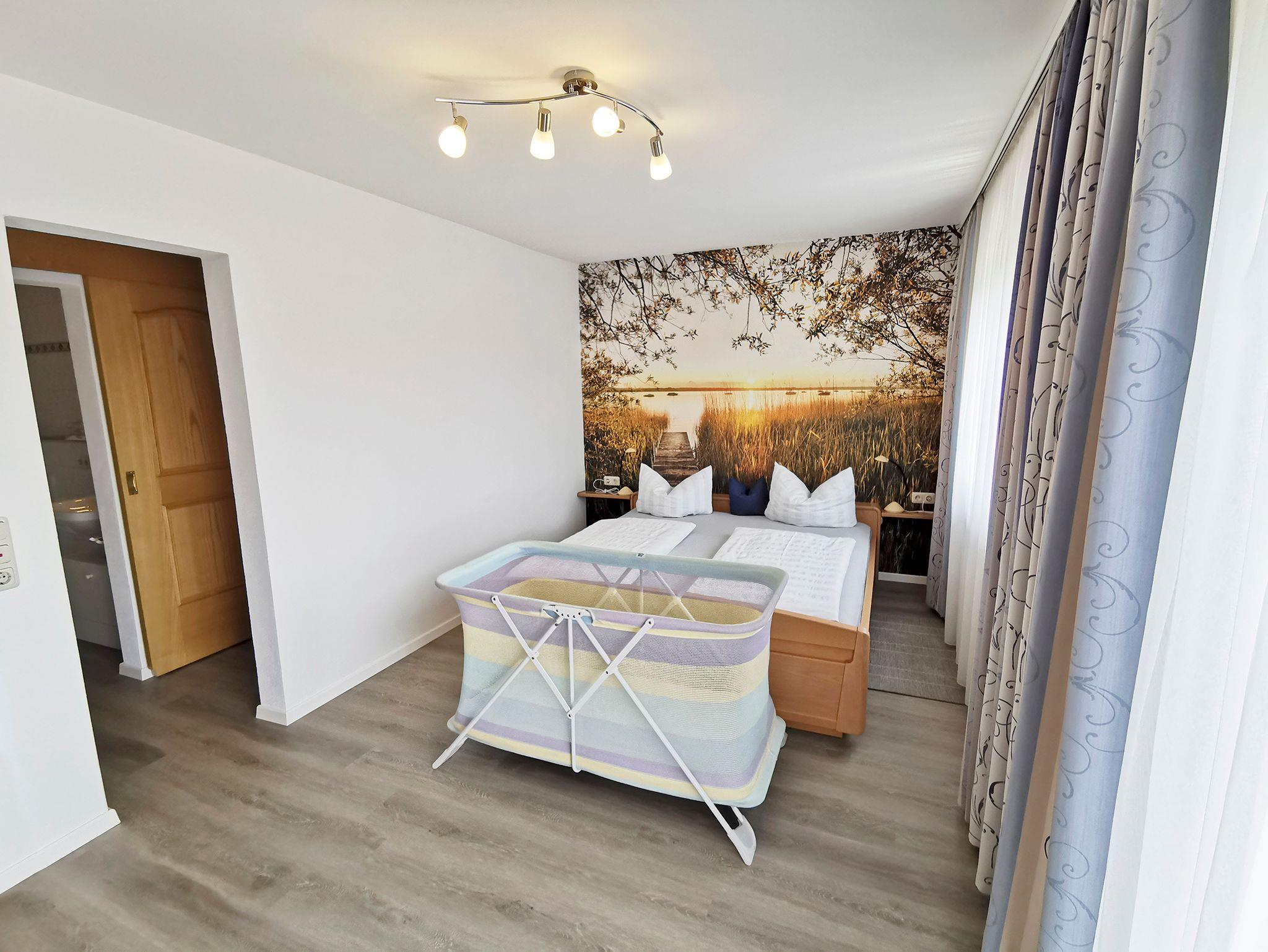 Die Grundfläche der Ferienwohnung beträgt 60 qm und sie befindet sich im ersten Obergeschoss des Bauernhauses mit Ausrichtung nach Süden.Sie verfügt über eine moderne Küche mit Spülmaschine, ein Wohn-Esszimmer mit großer Lümmelcouch, ein separates Schlafzimmer, ein Bad mit DU/WC, sowie ein zusätzliches separates WC. WLAN, ein Flachbild-TV und Kaffeemaschine, Toaster, Backofen, großes Gefrierfach, Wasserkocher, Fön und Bettwäsche sind ebenfalls vorhanden.Ein Südbalkon mit Bestuhlung, Tisch und Sonnenschirm sorgt für zusätzlichen Komfort und Entspannung.