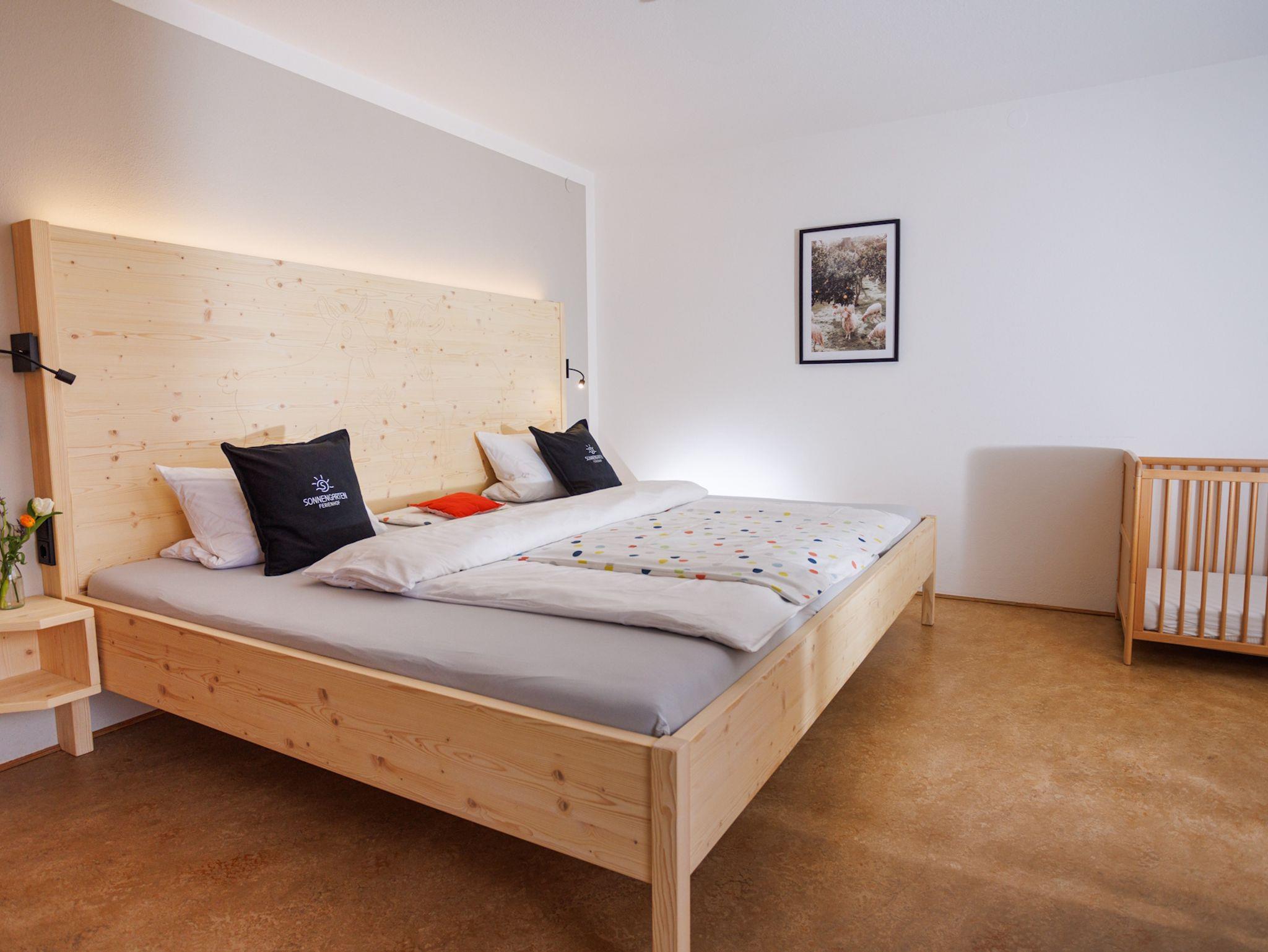 Zwei Schlafzimmer, darunter ein Elternschlafzimmer mit einem großen Familienbett (260 x 200 cm), ein einladender Wohnraum mit voll ausgetatteter Küchenzeile, ein modernes Bad mit Dusche, ein separates WC und ein sonniger Südbalkon geben euch viel Raum zum Wohlfühlen. Ideal auch für Familien mit mehreren Kindern: Im Kinderzimmer wartet zusätzlich ein gemütliches Juniorbett (70 x 160 cm).