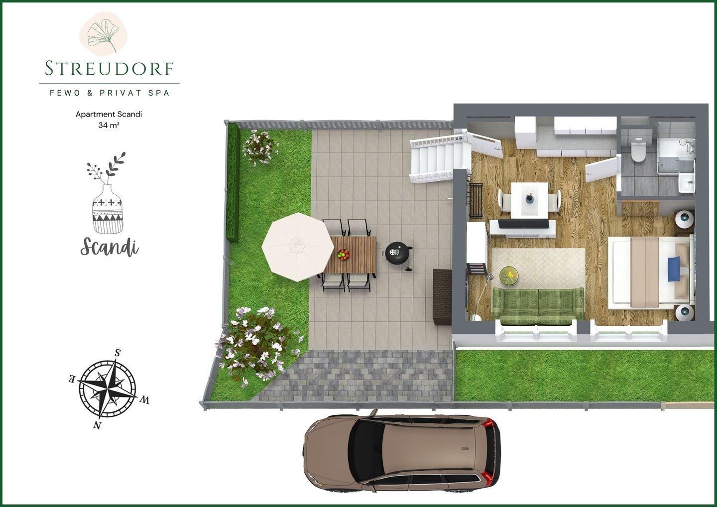Skandi Streudorf heißt Sie willkommen in einer modern renovierten Unterkunft, die auf 34 m² Wohnfläche zeitgemäßen Komfort mit durchdachtem Design verbindet. Das Ferienhaus befindet sich in ländlicher Lage im Dorf Streudorf, nur 50 Meter vom Zentrum entfernt und bietet durch die Positionierung im Parterre sowie die ruhige Umgebung beste Voraussetzungen für einen entspannten Aufenthalt. Die Nähe zu einem Sandstrand in 3.000 Metern Entfernung und dem Altmühlsee, der lediglich 400 Meter entfernt ist, eröffnet Ihnen vielseitige Möglichkeiten der Freizeitgestaltung im und am Wasser.